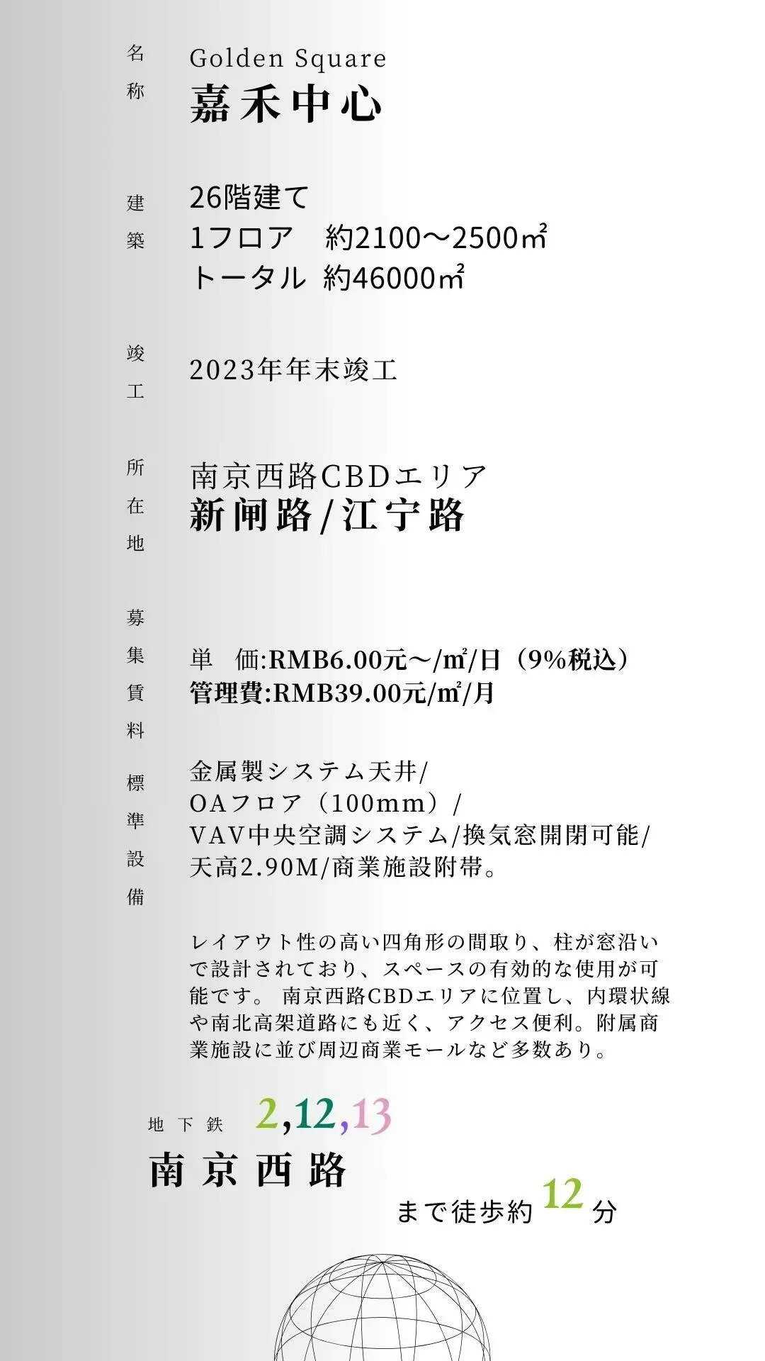 【キャンペーン価額実施中】南京西路エリアに位置し、コスパと有効利用性とも良い甲級オフィス《嘉禾中心》