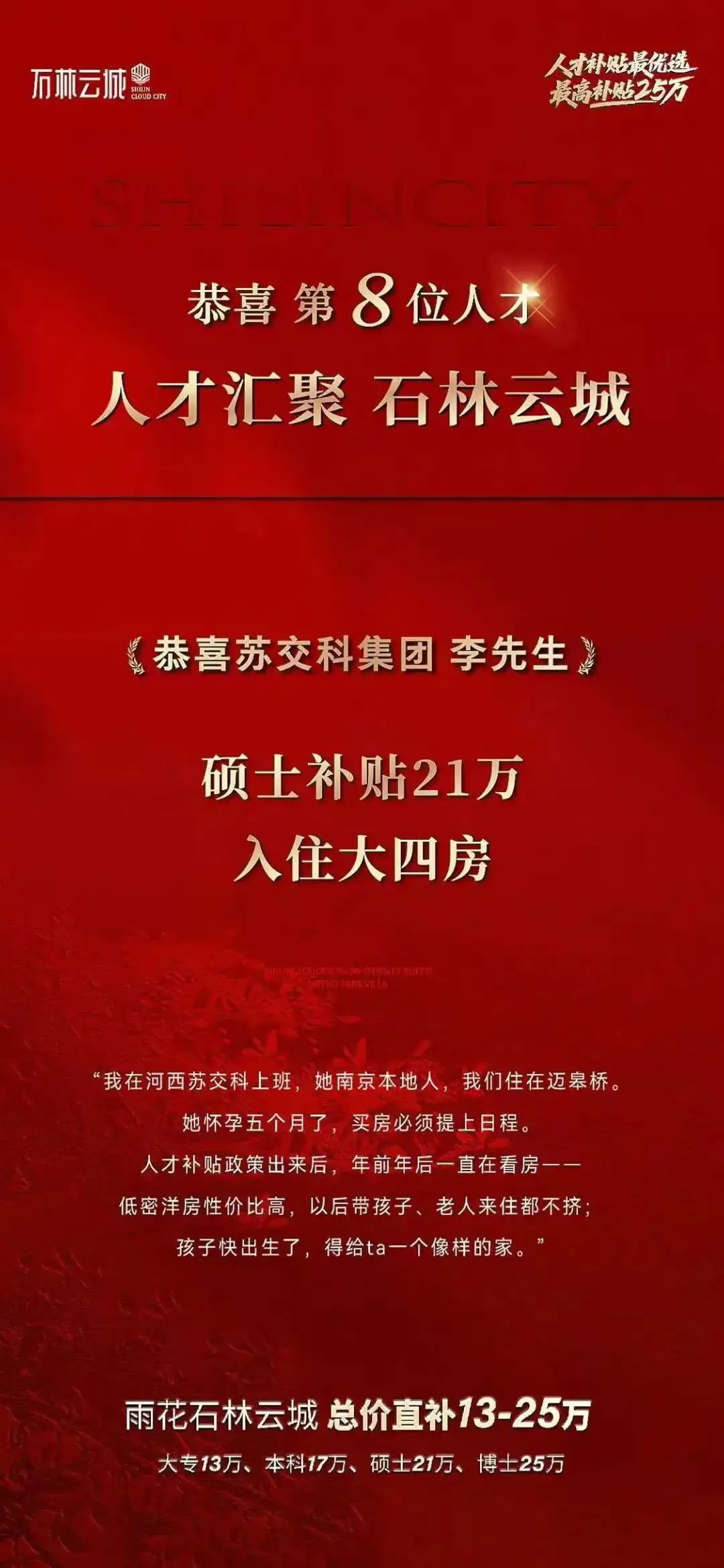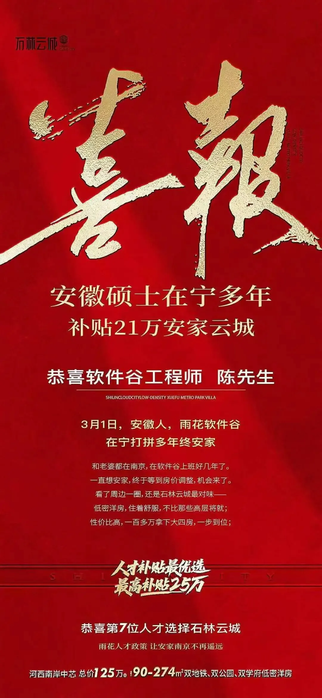 而石林云城,从产城融合的产业赋能到人才红利的承接,从实景兑现的多元产品到超高性价比的姿态,稳稳接住了南京人才新政的时代红利,也为全国各地人才安家南京,提供了千载难逢的机会。