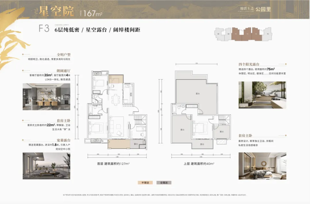 顶跃“星空院”:带多个露台,可用于休闲、聚会、花园等,成为放松身心、享受自然的自由空间。