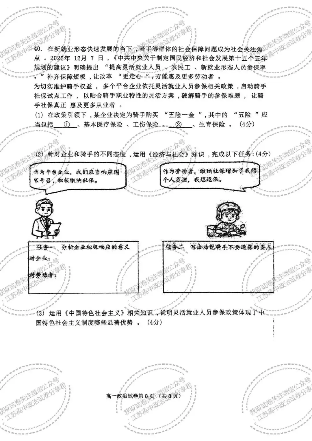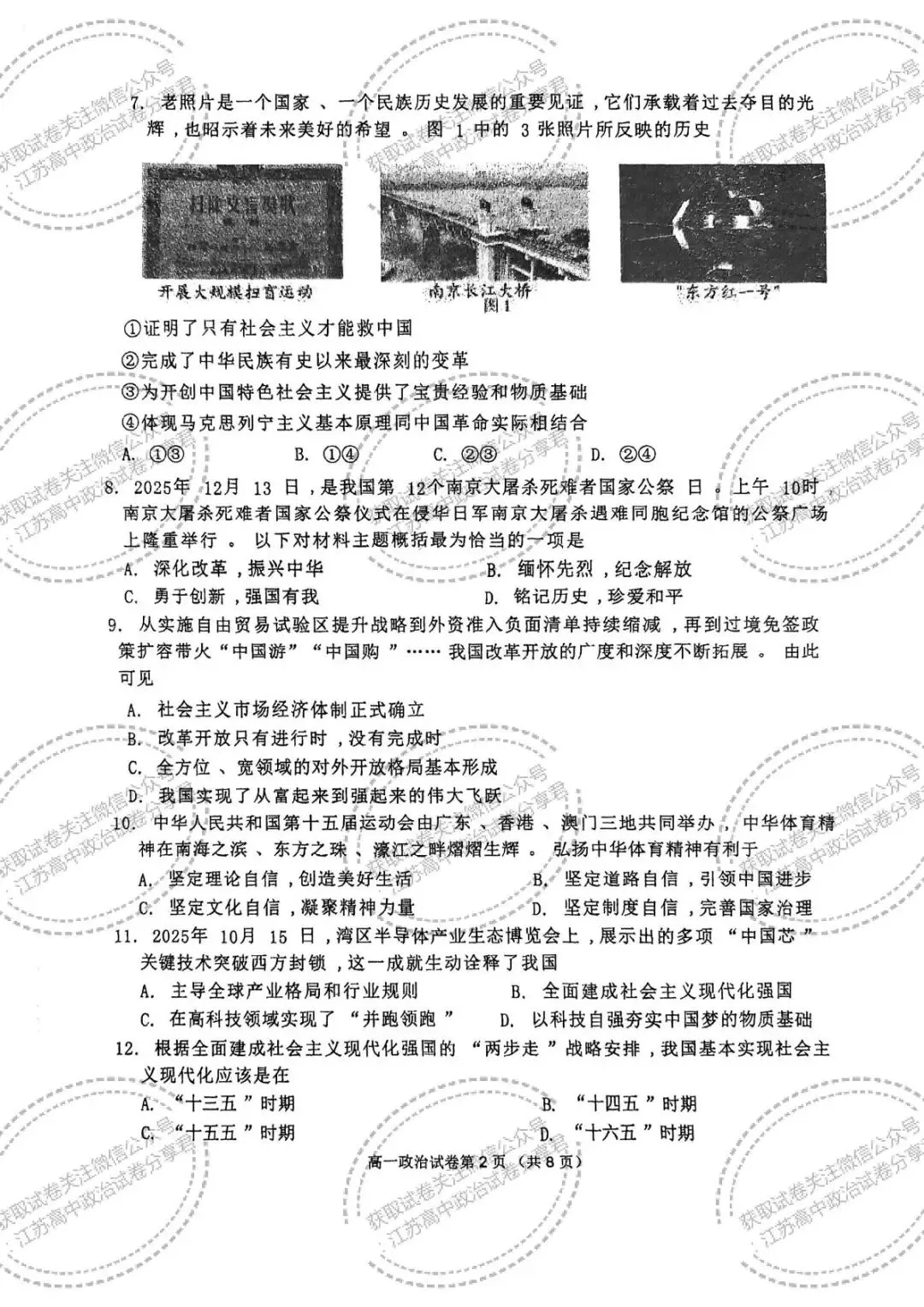 江苏南京市2025-2026学年第一学期期末学情检测高一政治