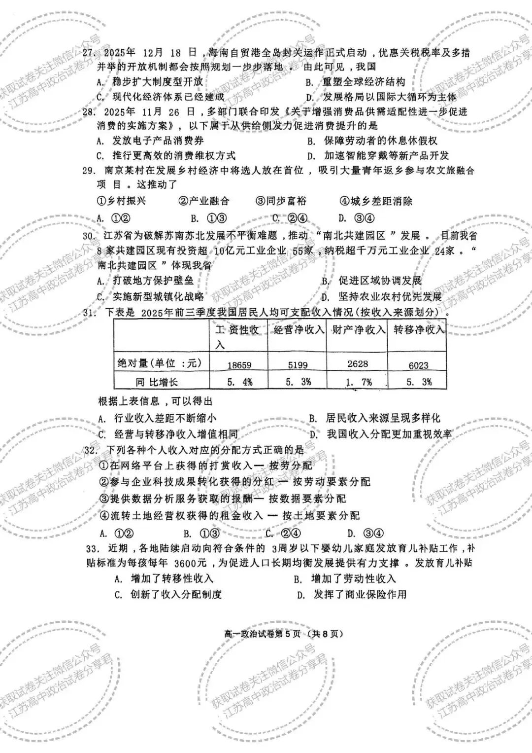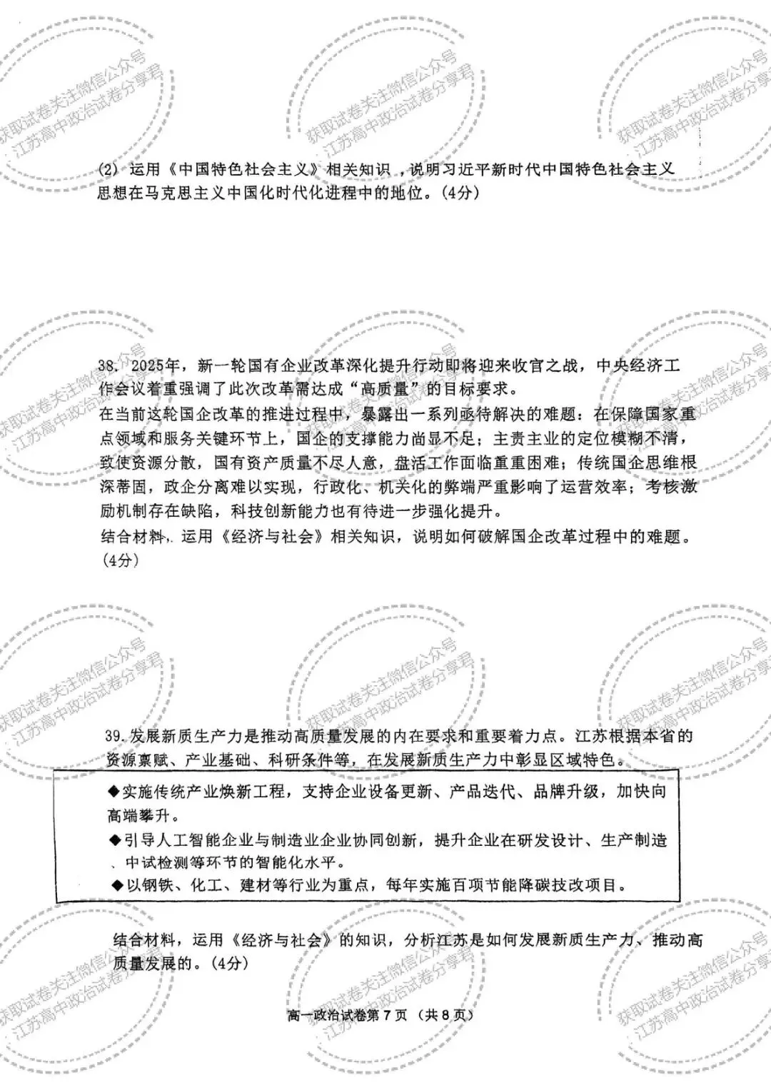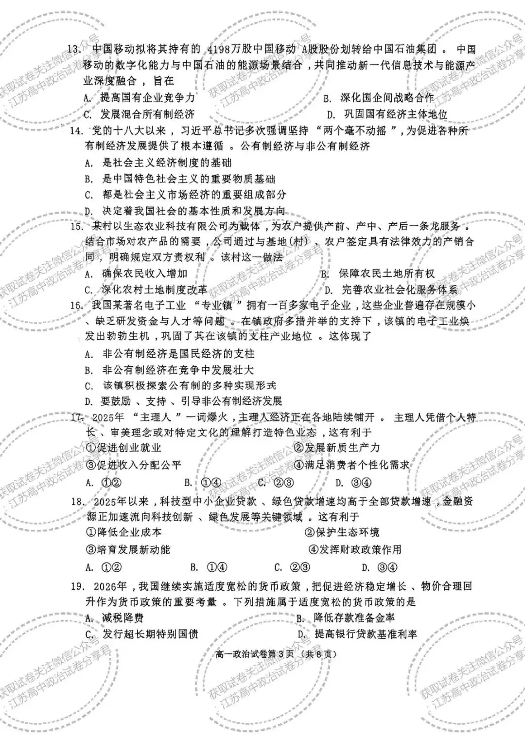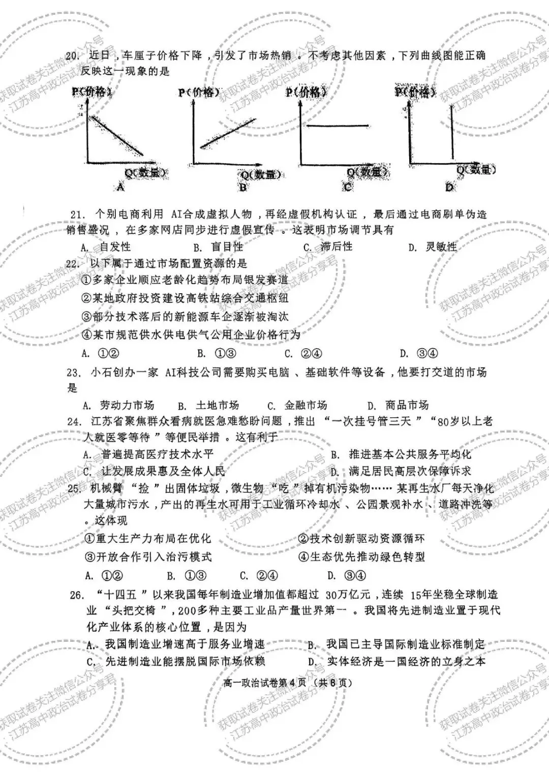 >江苏南京市2025-2026学年第一学期期末学情检测高一政治