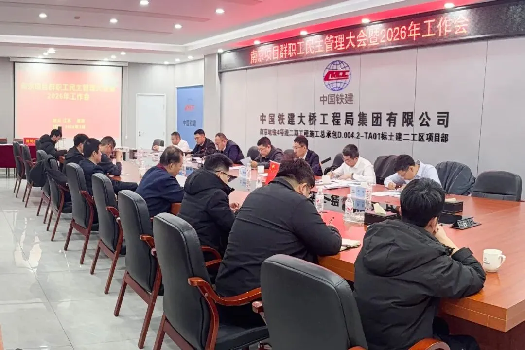 结合南京项目群实际情况,就2026年整体工作,申军波强调:一是强化系统学习,紧扣“十五五”开局之年企业转型升级要求,所属各项目要及时组织学习集团与公司新管理办法,精准把握发展方向,以学习提升能力、指导实践;二是攻坚经营承揽,围绕公司“城轨+1256”中长期发展目标,重点跟踪城轨、市政等地下工程以及省市公路项目,坚持自主经营、深耕区域市场,严守经营红线;三是抓实在建履约,坚持稳中有进,统筹安全、质量、进度、经济管理,严格落实“铁腕治安硬十条”,推进一次成优、一次达标,抓好收尾结算与效益攻坚;四是筑牢稳定底线,全面排查化解矛盾纠纷,强化沟通协调,坚决防范、妥善处置各类风险;五是建强人才队伍,以“选、育、用、管、留、退”全链条建设为抓手,公平公正选拔任用干部,锻造素质精良、活力迸发的骨干队伍;六是从严检查备战,高度重视各类专项治理工作,主动对标、周密推进,确保取得实效。