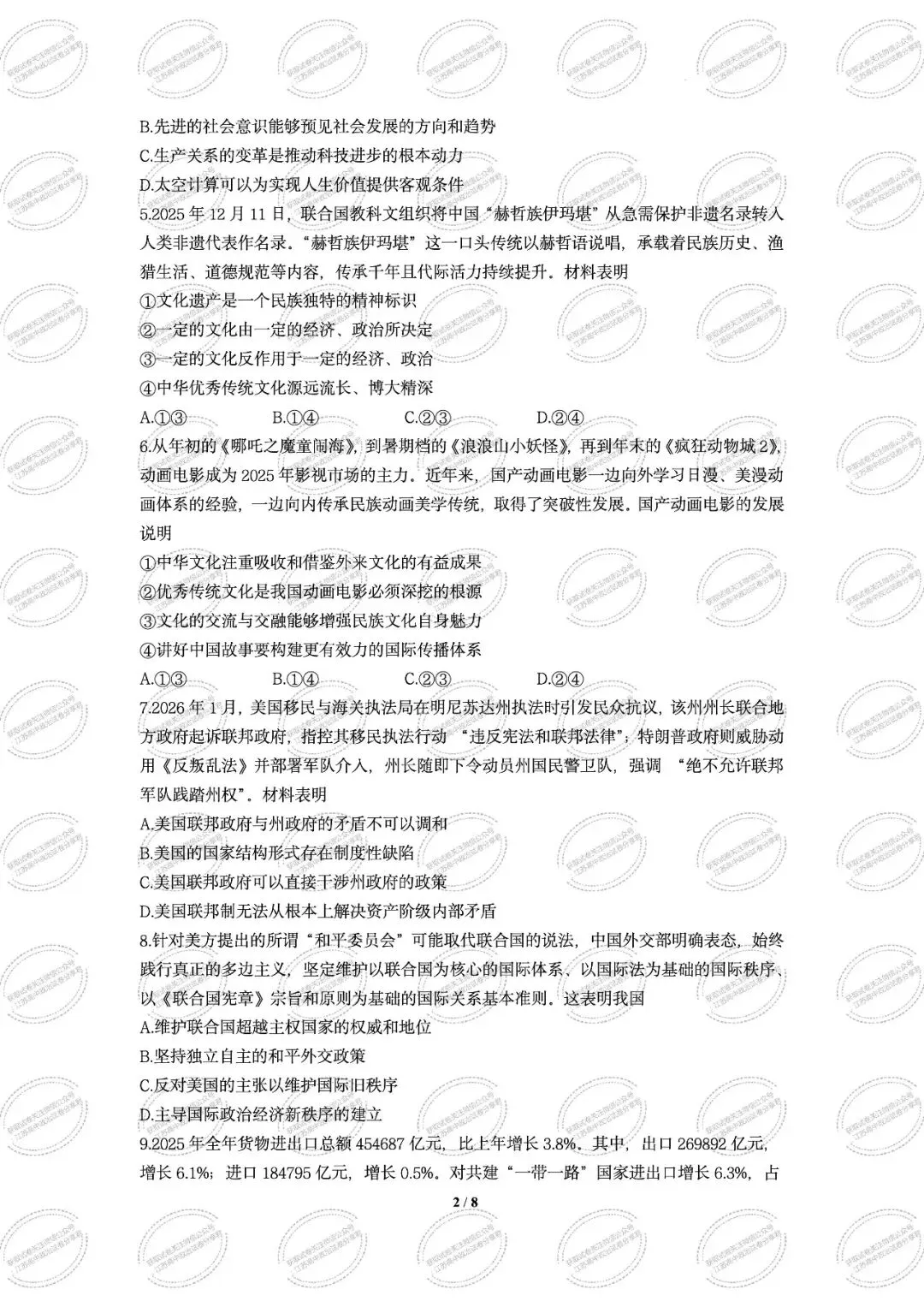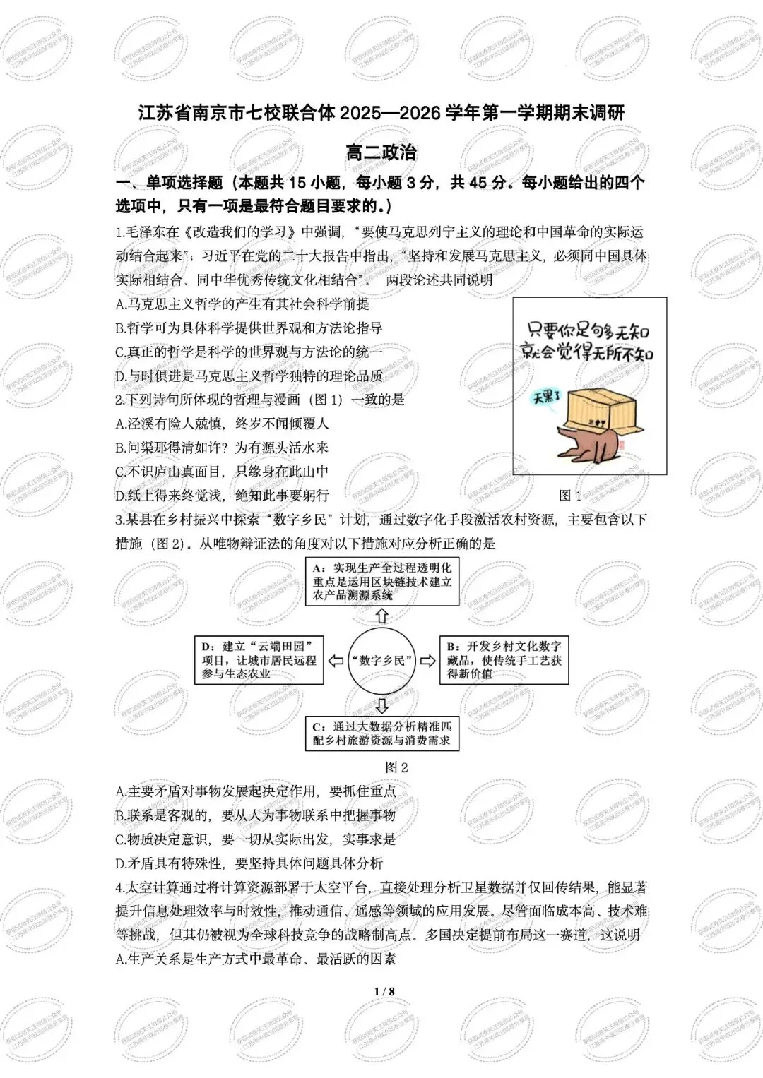 >江苏省南京市七校联合体2025-2026学年第一学期期末调研高二政治试题