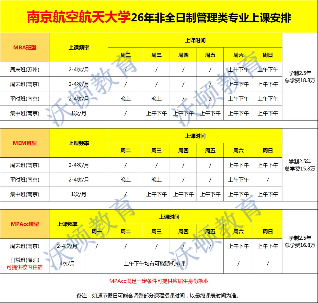 南京航空航天大学非全日制MBA/MEM/MPAcc的学费: