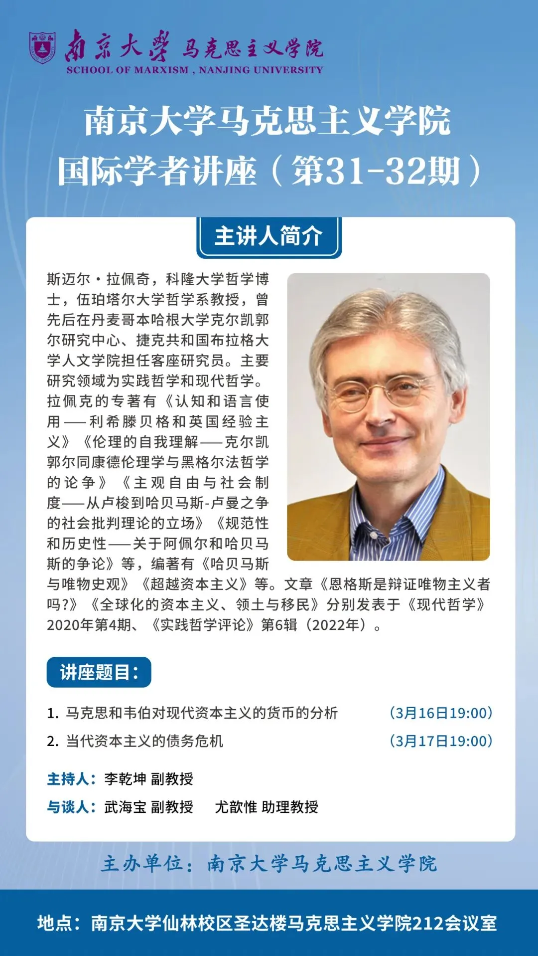 >讲座预告 | 南京大学马克思主义学院国际学者讲座(第31-32期)