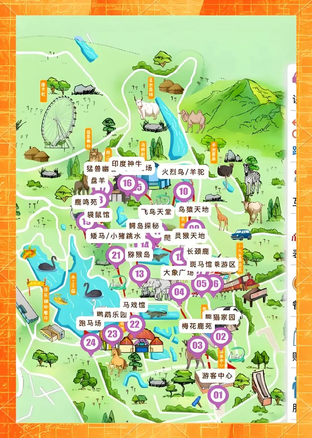 - 路线:熊猫家园→梅花鹿苑→大象广场→斑马馆→长颈鹿广场