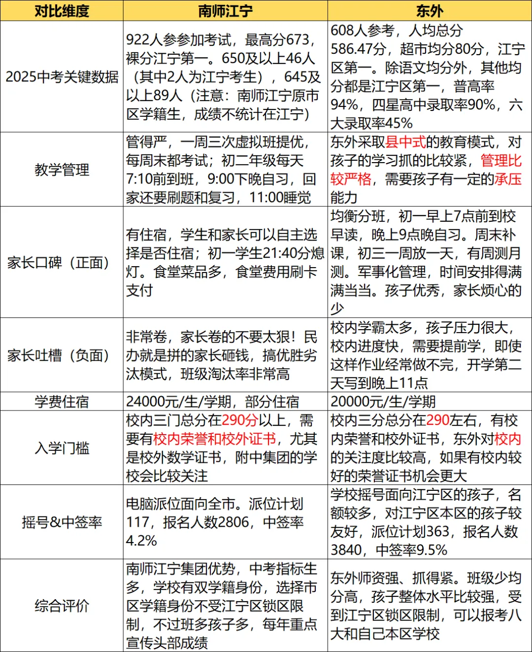 参加中考的人数上南师江宁会比东外多三百人左右,体量有明显差距,均分上东外会更占有优势。