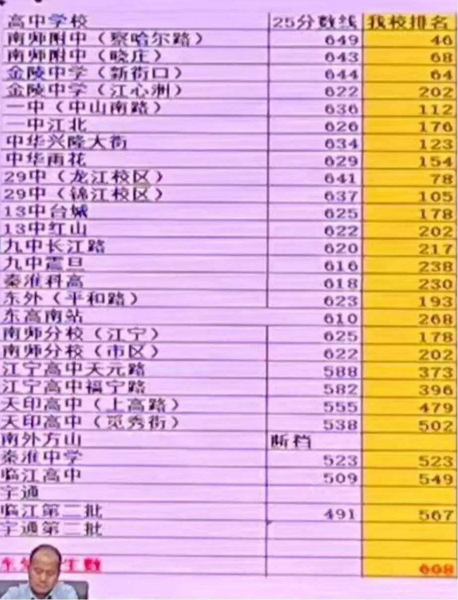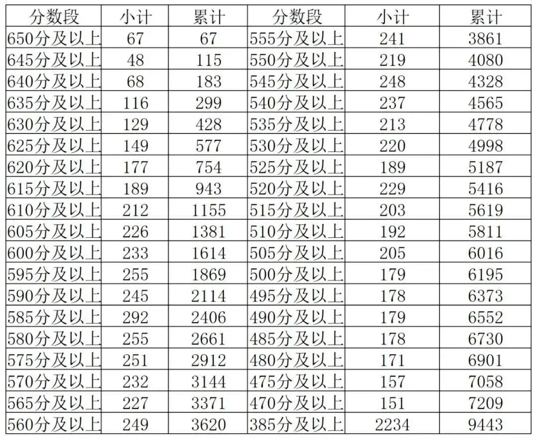 高分段:670分及以上1人,660 分及以上6人,655分及以上25人,650分及以上46人,640分及以上132人。104人达南师附中录取分数线。