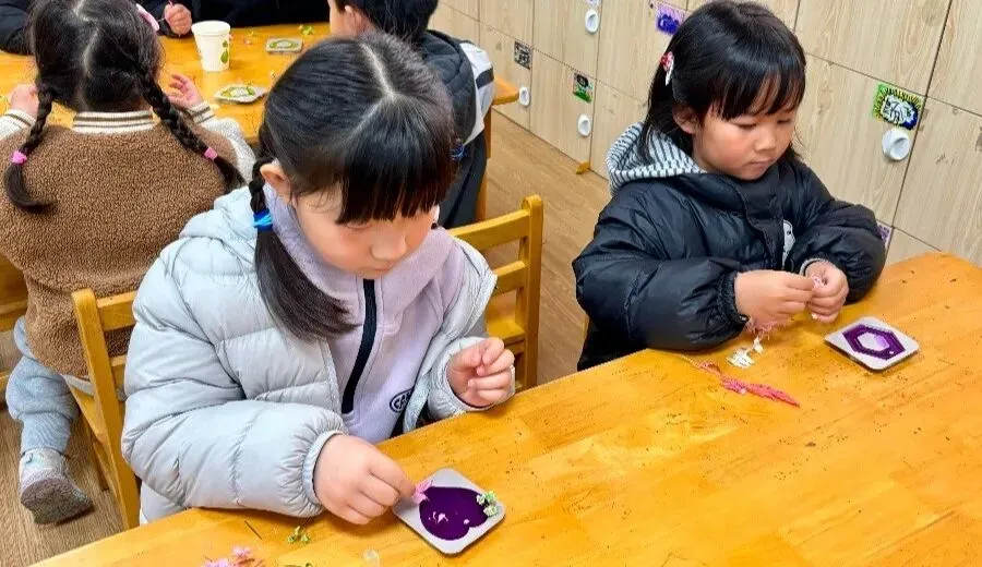 瞧!宝贝们化身小小艺术家,用稚嫩双手体验扎染乐趣。一折一扎,一抹一染,每一个独一无二的发圈,都藏着最纯真的心意。把亲手制作的礼物送给妈妈,用色彩传递感恩与爱意,在动手间学会表达爱,让这个节日温暖又有意义。