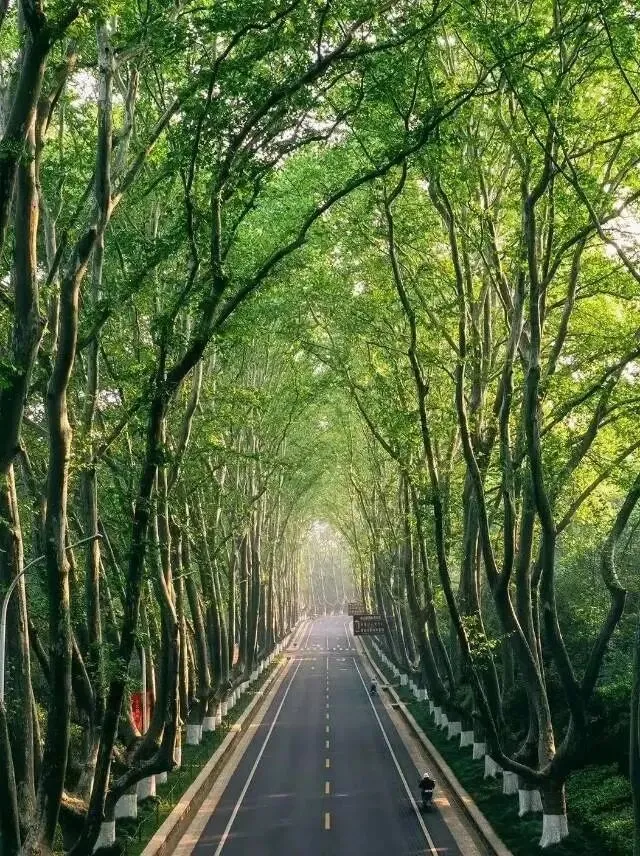 紫金山是留下我们脚印最多的地方。这座山,藏着南京的四季,也藏着无数的温柔。中山陵的石阶,美龄宫的梧桐项链,明孝陵的石象路,还有那条蜿蜒的梧桐大道,一步一景,皆是风情。春时,山间花团锦簇,桃李争艳,草木吐新,处处是生机;夏来,浓荫如盖,梧桐蔽日,走在林间,只觉清凉惬意;秋至,便是紫金山最美的模样,枫树红得热烈,银杏树黄得璀璨,红的黄的,层层叠叠,错落有致,漫山遍野,美不胜收,风一吹,落叶纷飞,像一场温柔的秋雪;冬雪落时,山间银装素裹,静谧安然,天地间一片纯白,美得动人心魄。紫霞湖的风,吹了我好几个春夏秋冬,湖面波光粼粼,风拂过耳畔,轻轻柔柔,忽然就想起那句歌词:我吹过你吹过的风,这算不算相拥。想来,这山间的风,藏着无数人的故事,也藏着无数的温柔。