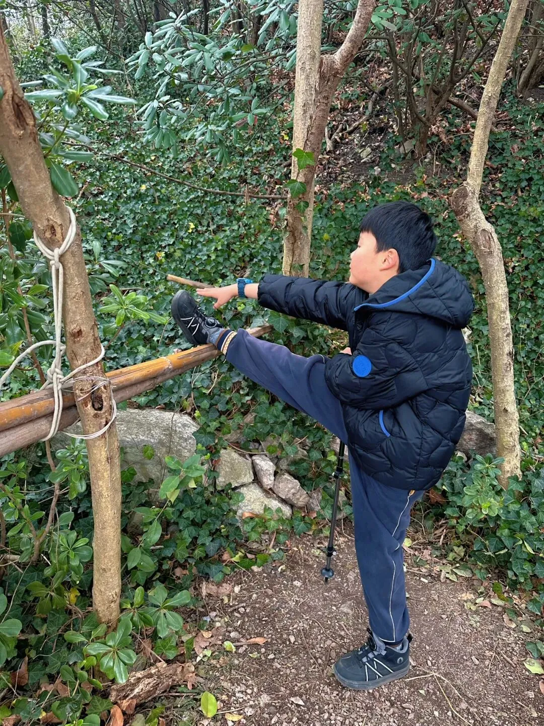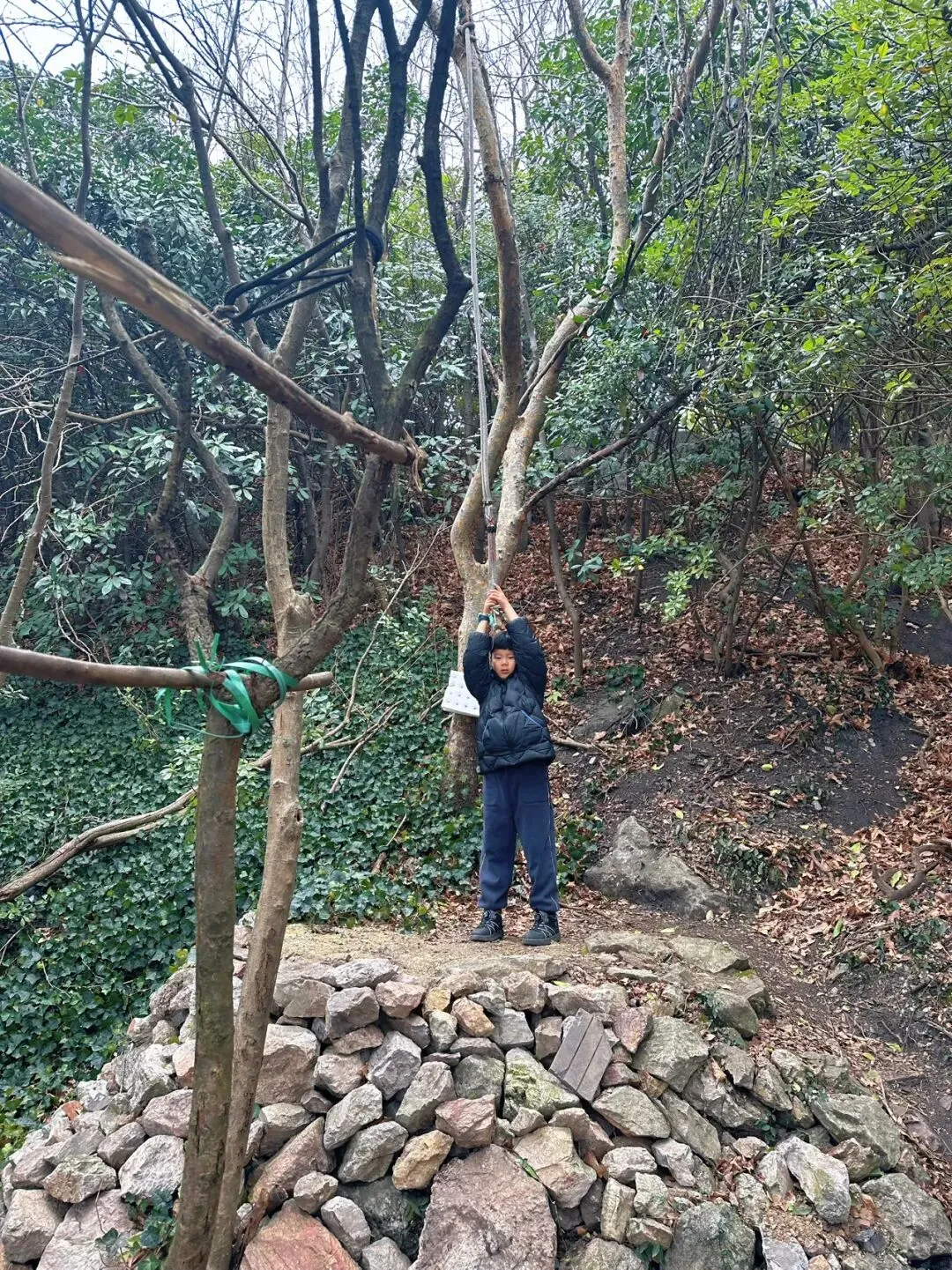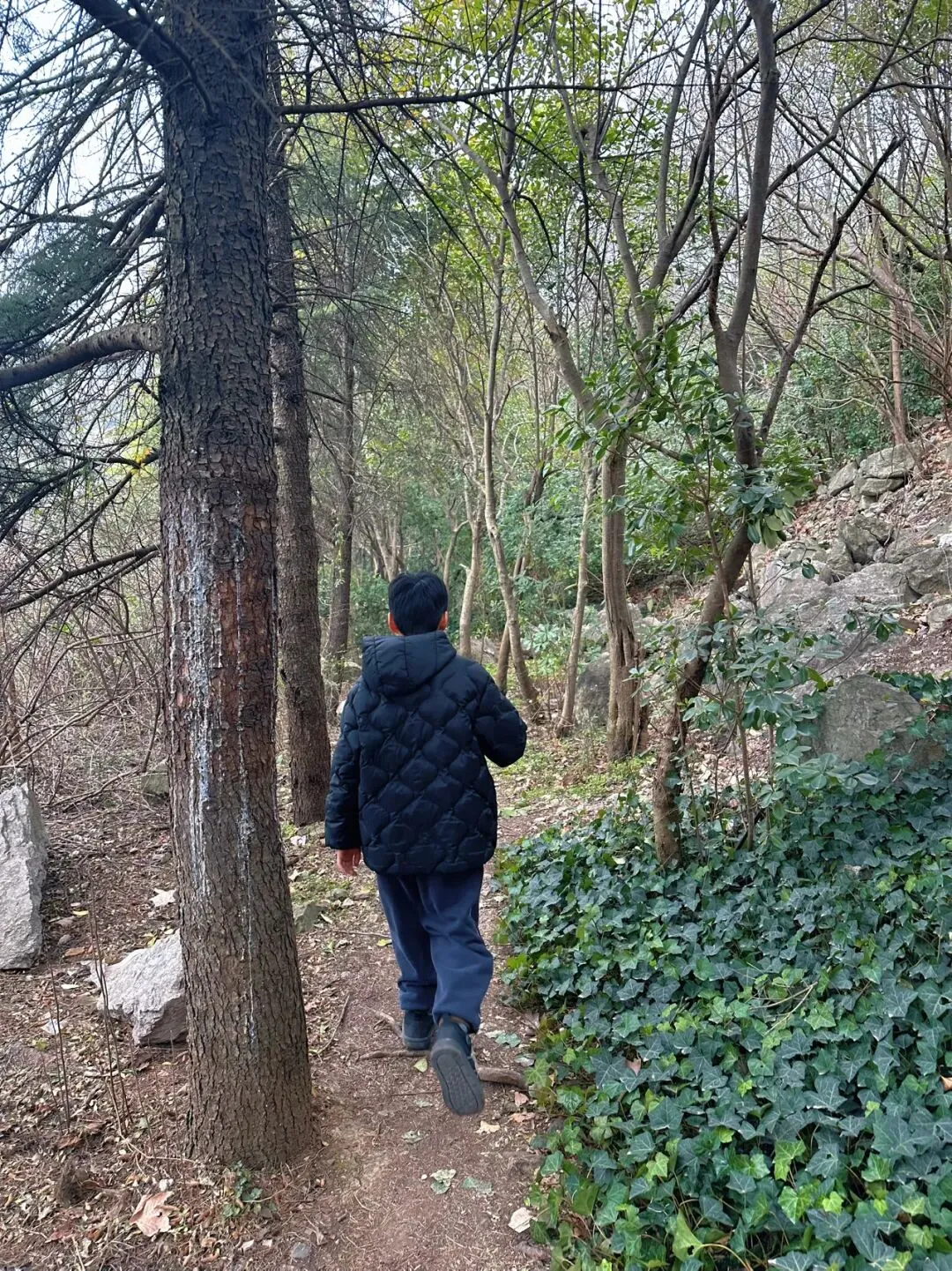 从五马渡附近的入口进山,走没多远就能拐上一条野趣十足的小路。小福一路小跑在前面开路,突然回头冲我喊:“老妈快来看!这里有个秘密基地!”