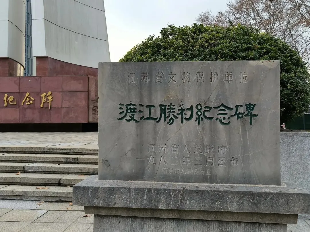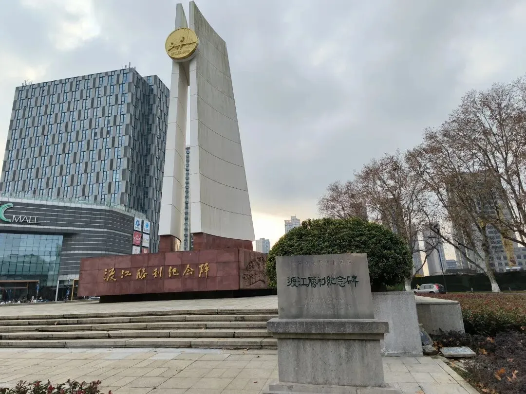 在下关热河路广场中央屹立着渡江胜利纪念碑,立有省保碑。