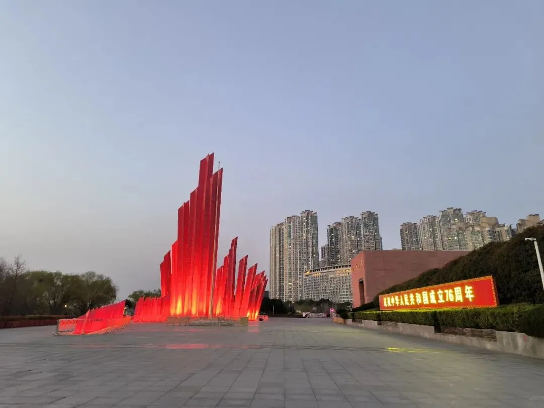 ,三汊河新的渡江纪念广场上的红帆雕塑最