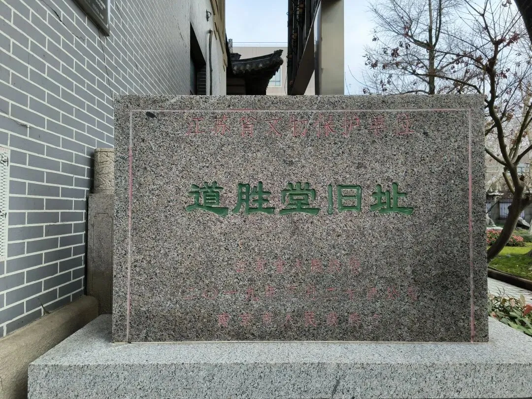 道胜堂旧址,省保。一侧墙上有展板介绍学校的历史延革: