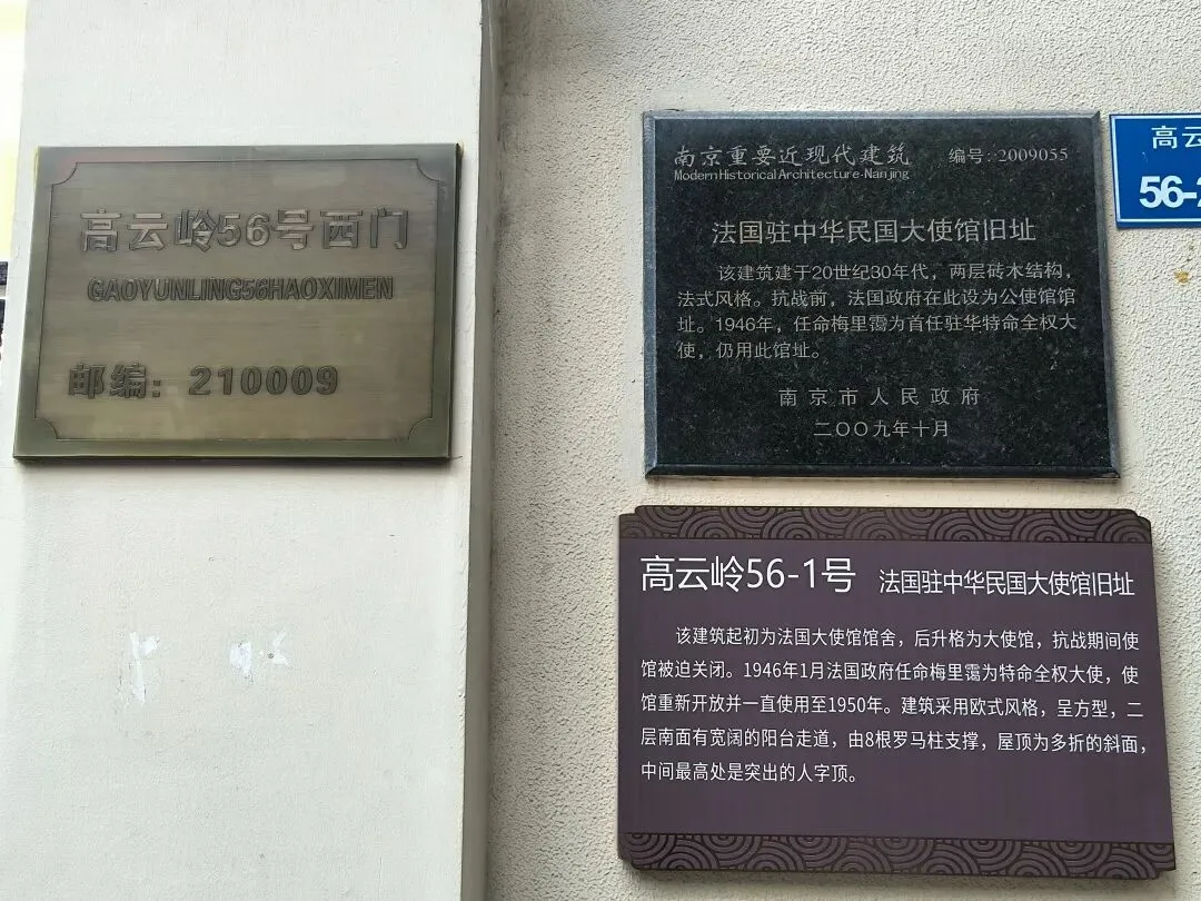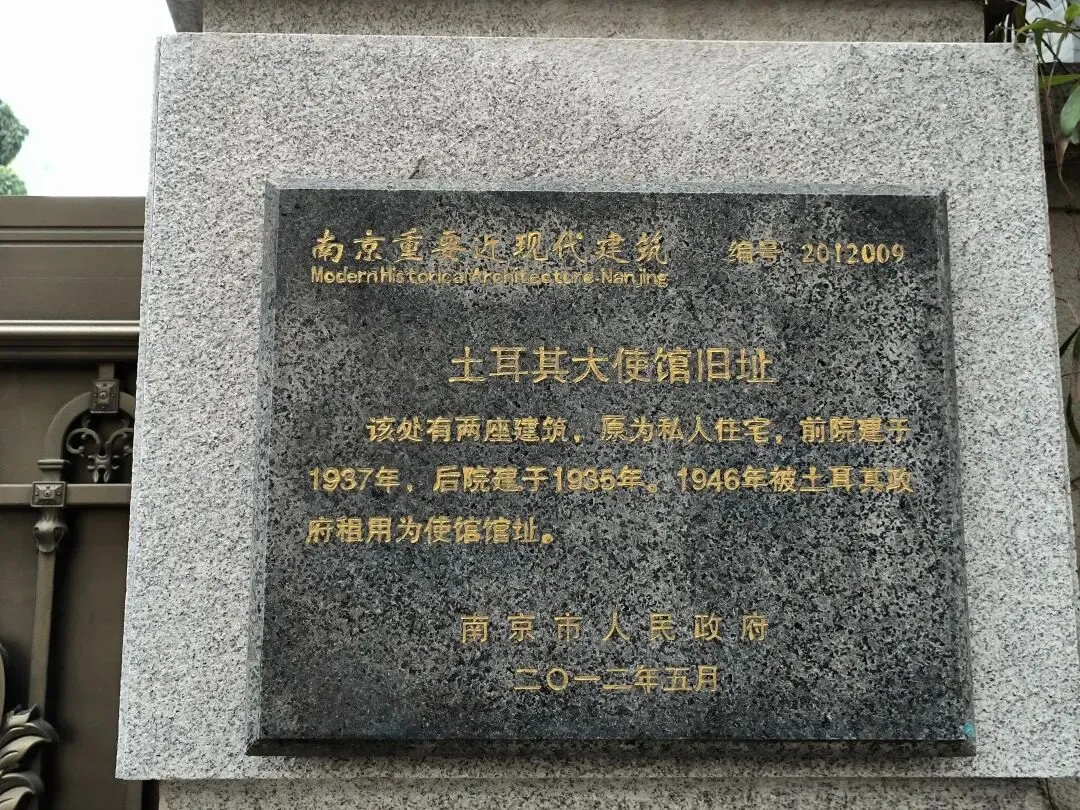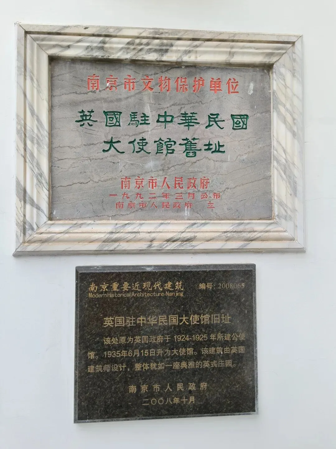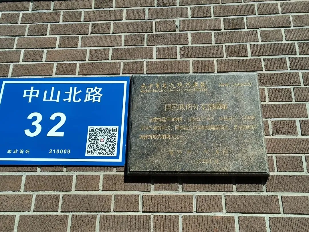 走到路口,向右拐一点到虎踞路上,双门楼宾馆内有一幢“小白楼”,门口立着一块国保碑,此行看到的第一块国保碑——英国驻华使馆旧址。