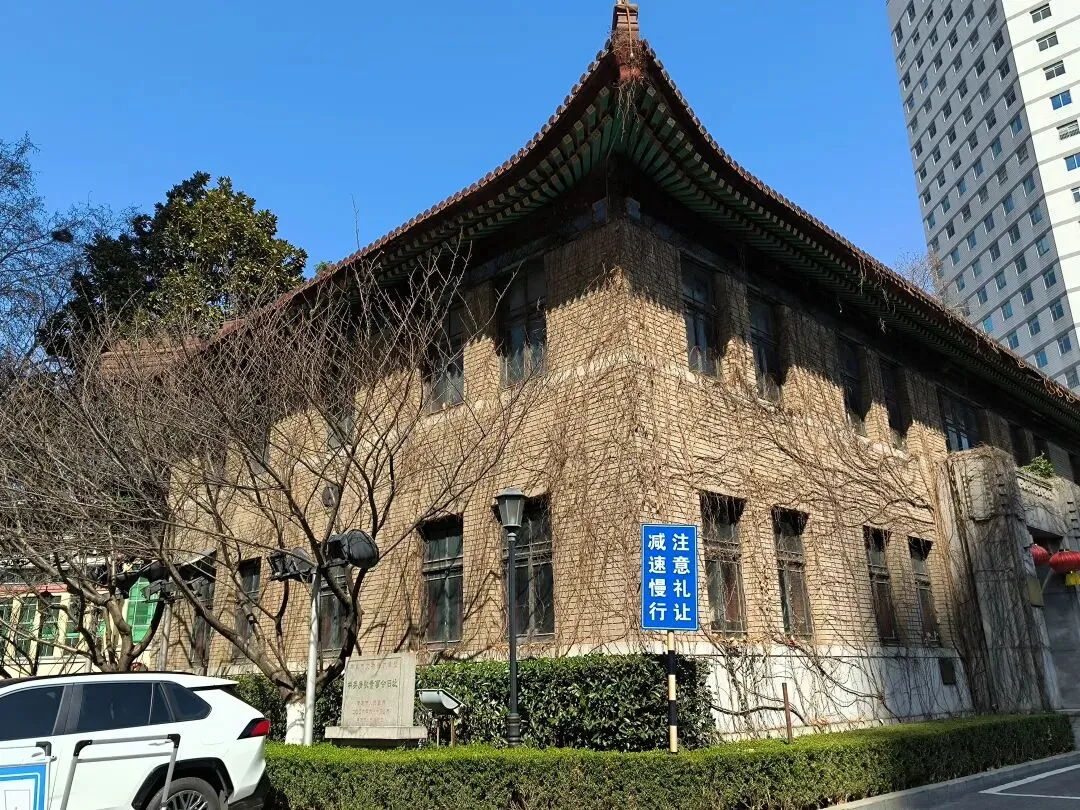校园内有民国建筑,隔着栅栏门一目了然,一看就“很不一般”,细瞅,果然有碑,跟校门口的保安打了个招呼,走到跟前拍一下碑。
