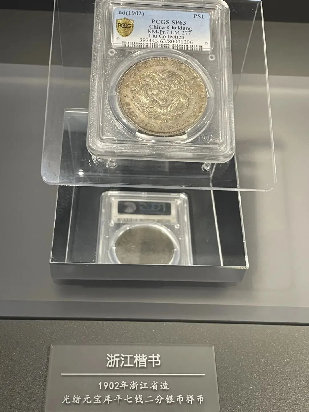 永银钱币博物馆镇馆之宝的“喜敦五大样币”中浙江楷书版因存世量极少,被誉为 "机制币中的熊猫"。据讲解员说全世界范围内仅存三枚,一枚陈列在永银钱币博物馆;一枚存放于汇丰银行保险柜中;还有一枚则由台湾的一位私人收藏家珍藏。图源:肉腾腾和稳稳当