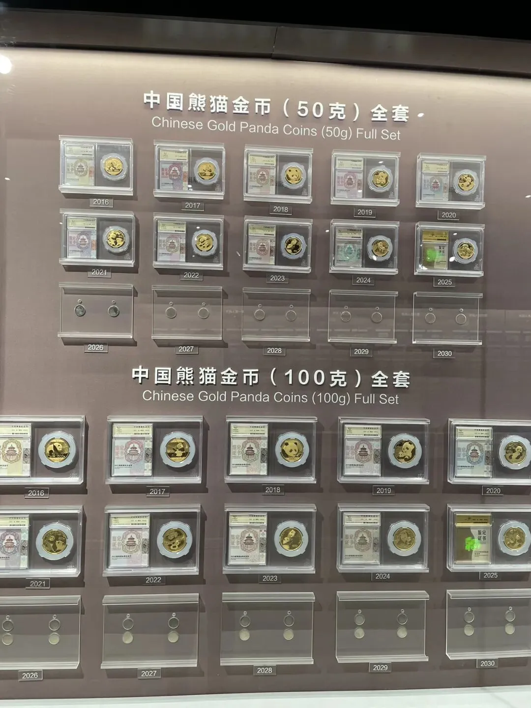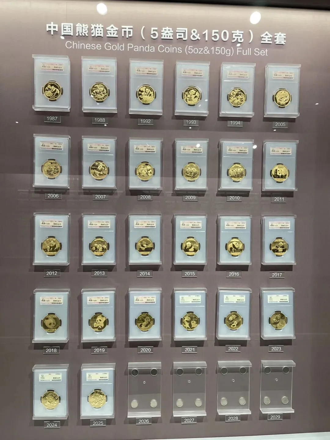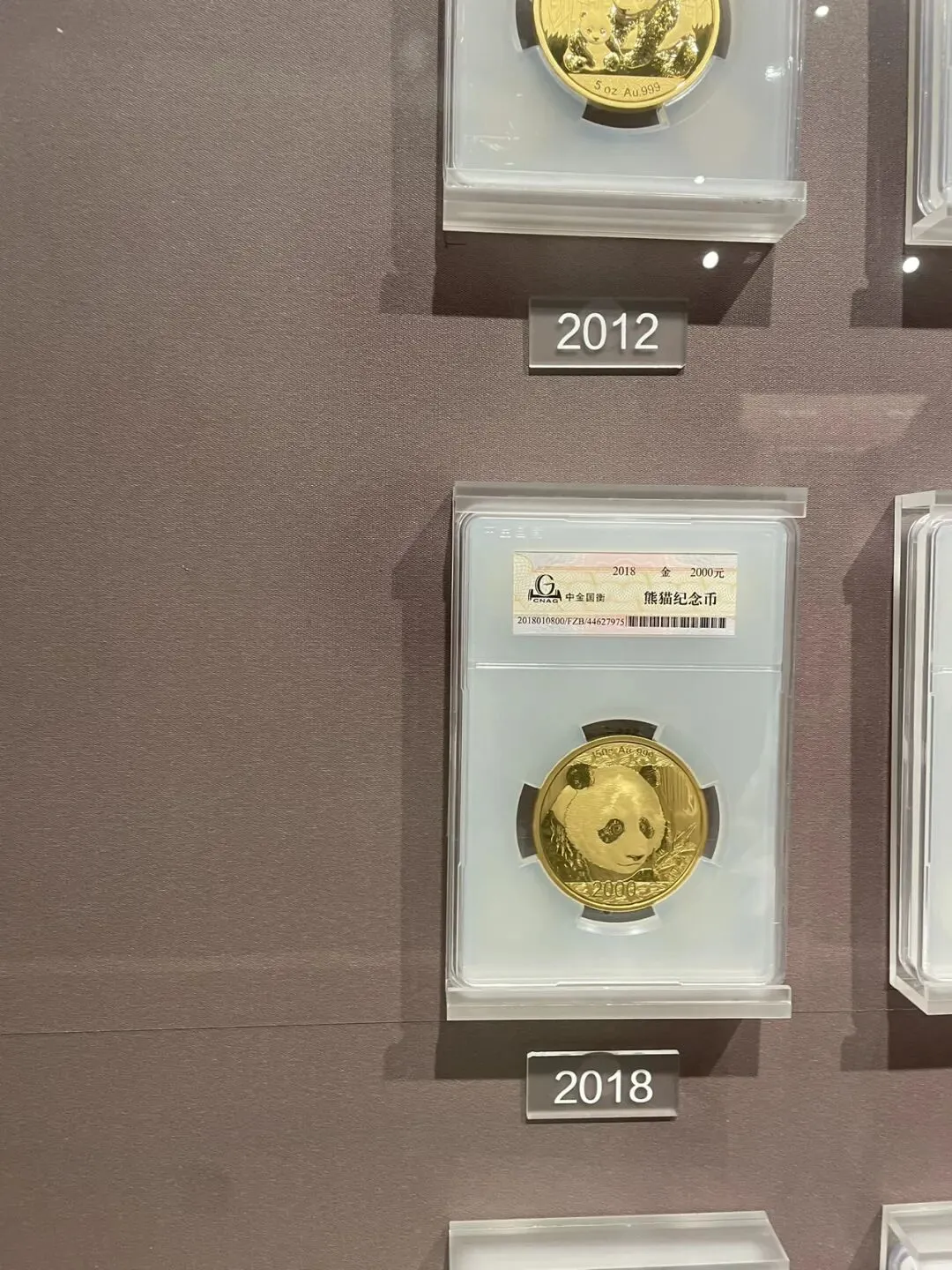 永银钱币博物馆中央行发行的“熊猫金币”墙 图源:肉腾腾和稳稳当