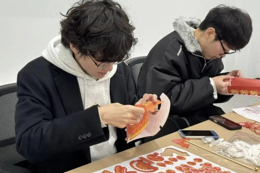 “剪艺呈祥,纸映元宵”剪纸区里,师生执剪游走,红纸翻飞间,一幅幅精致的窗花、灵动的马年生肖纹样在指尖悄然绽放,将非遗技艺的匠心与新春佳节的美好祝福巧妙相融。