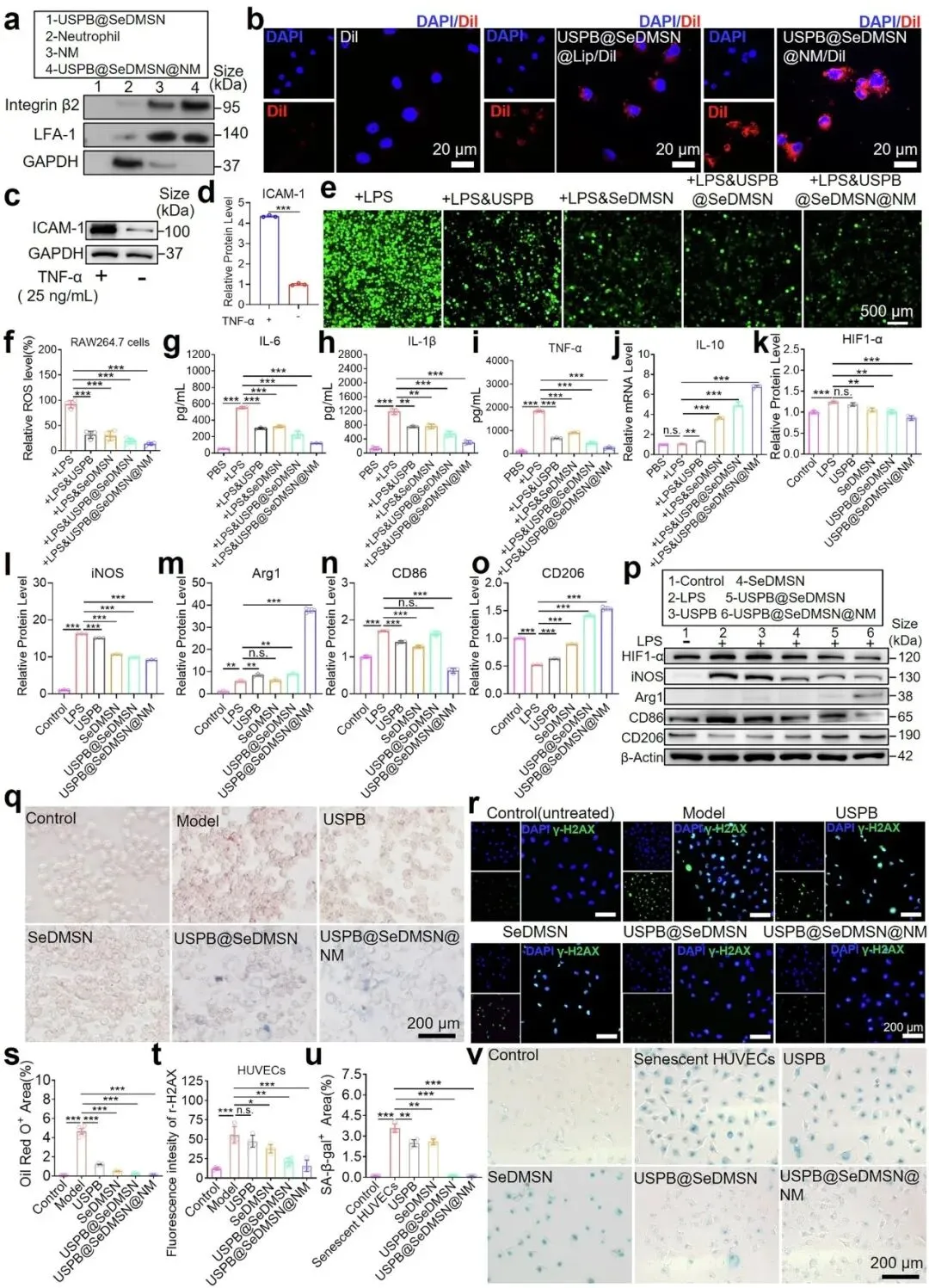 USPB@SeDMSN@NM 的细胞摄取效率、ROS清除能力、巨噬细胞极化、抗炎及抗衰老活性的体外探索