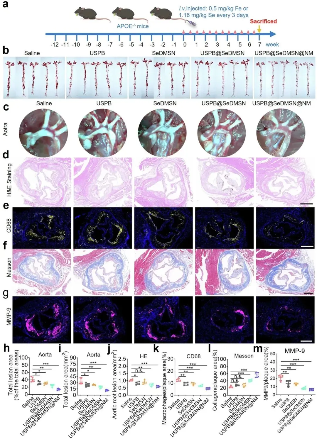 静脉给药的 USPB@SeDMSN@NM 在动脉粥样硬化小鼠中的治疗效果