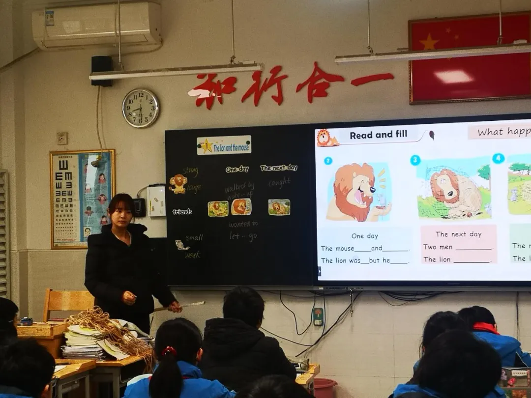 惠金丽老师执教《The lion and the mouse》。教师教态亲和, 学生参与度高,课堂氛围温暖, 师生互动高效。惠老师采用自由对话的形式,以谈论爱好为切入口,导入单元话题。惠老师依据高年段学生认知特点,采用了自主探究、合作学习法,借助语篇图片,在多个环节提供小组合作讨论的平台,让学生自主探究故事、初步感知核心语言。惠老师以英语学习活动观为导向,在主题引领下,以活动为路径,以问题赋能,帮助学生理解故事、初步感知本单元语言点,领略单元主题意义所在。