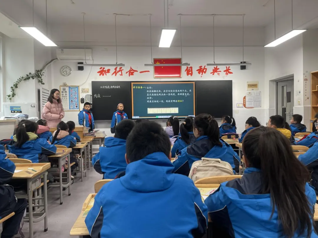 高梓雯老师执教《认识线段、射线和直线》。在教学中,高老师基于新型优质小班制的要求课前备课充分、教学设计规范。教学流程紧扣自学—共学—展学环节,任务指向明确,学生活动组织有序,为新学期教学奠定了优质的开端。执教过程中,多处教学设计富有巧思,亮点突出,能有效调动学生参与热情,体现出较强的创新意识与课堂驾驭能力。