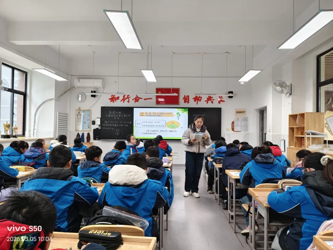 杨勋云老师执教《等式、方程的意义和关系》。本节课教学苏教版五年级下册方程的含义及与等式的关系,课堂流程顺畅,环节衔接自然。教学中坚持以学生为主体,充分发挥小先生作用,鼓励学生自主表达、合作探究,引导学生主动理解等式与方程的联系与区别。课堂氛围轻松有序,学生参与度高,较好地达成本节课教学目标。