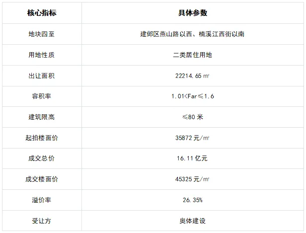 2025年12月19日,南京土拍市场诞生新晋单价地王,河西中NO.2025G90地块被奥体建设成功摘得。45325元/㎡的成交楼面价,打破了葛洲坝中国府保持近10年的纪录,26.35%的溢价率在当前分化的土拍市场中格外亮眼。