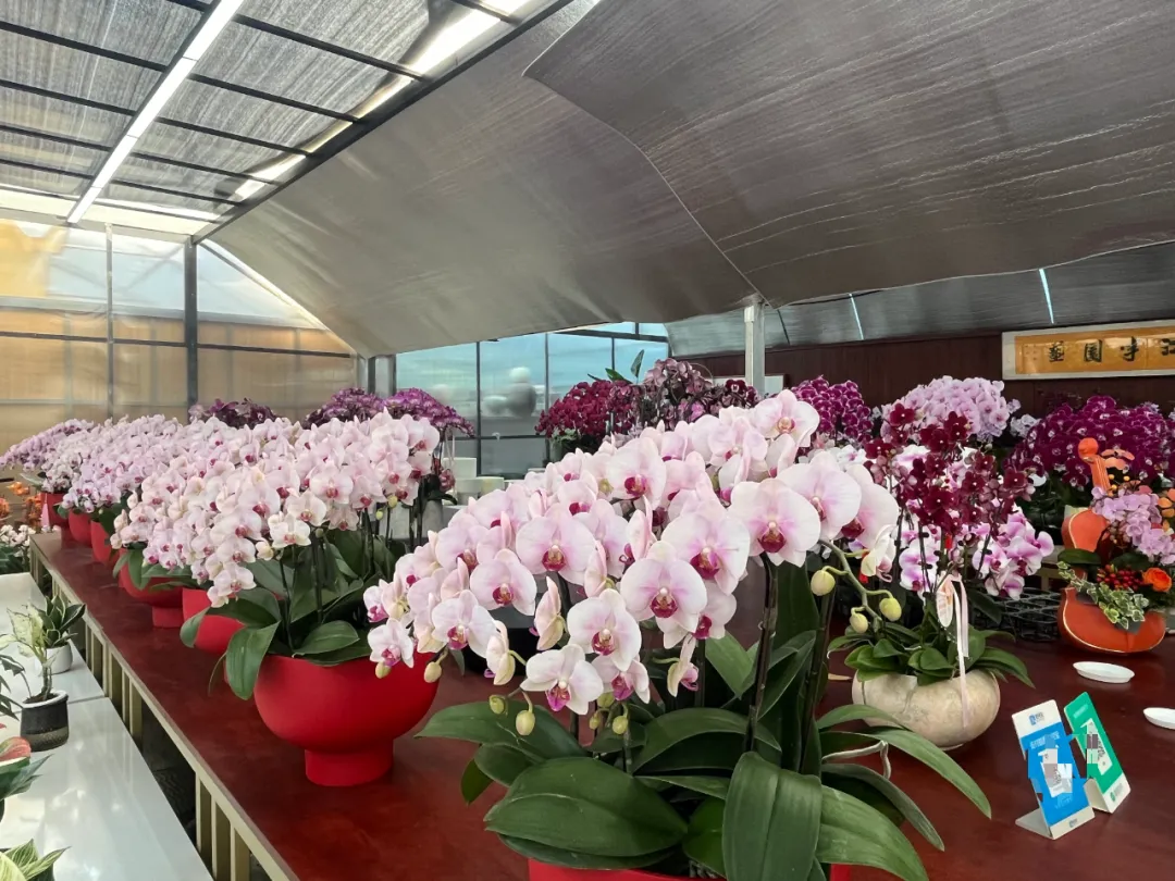 大量的蝴蝶兰、杜鹃花盛开,绿萝、龟背竹等绿植生机勃勃。