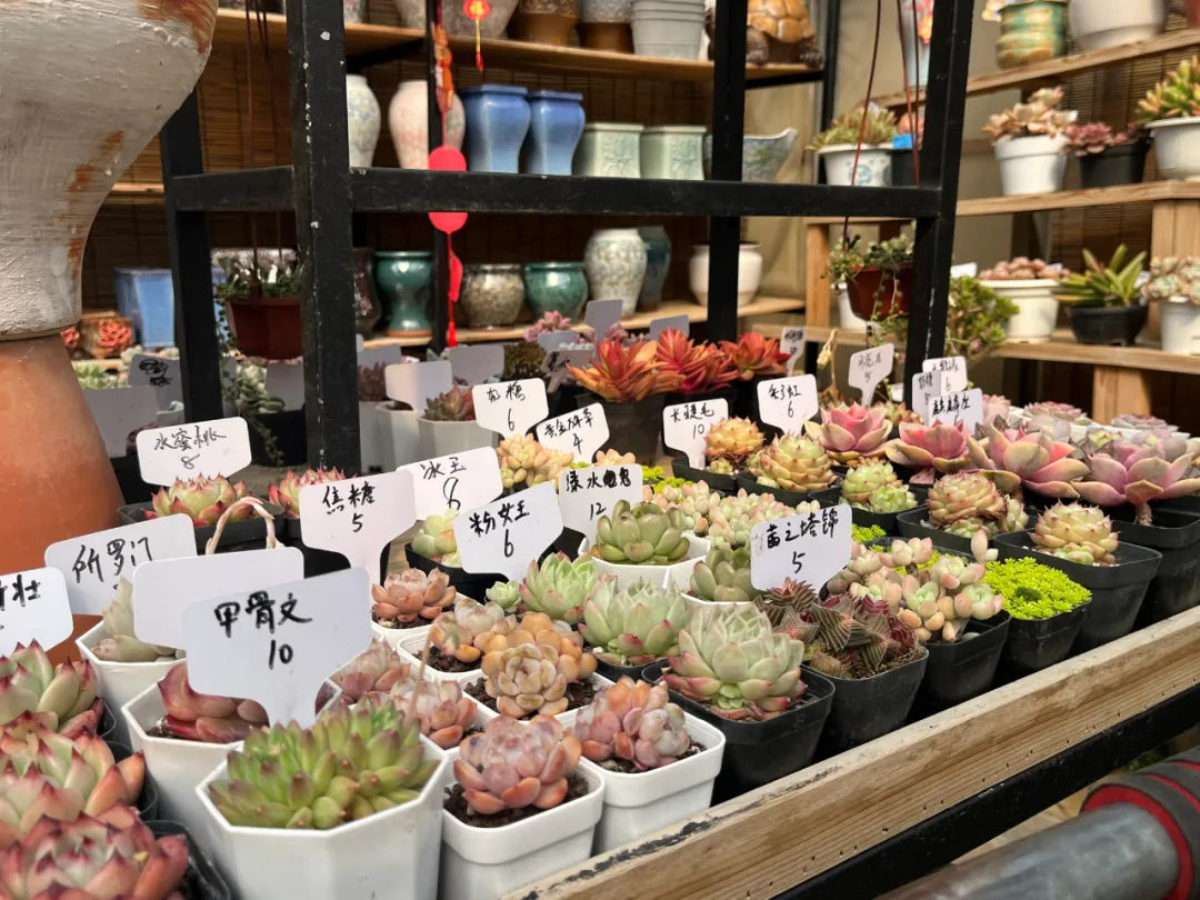 不到10元就能入手的多肉植物,造型多样、养护简单,吸引了不少年轻人驻足。