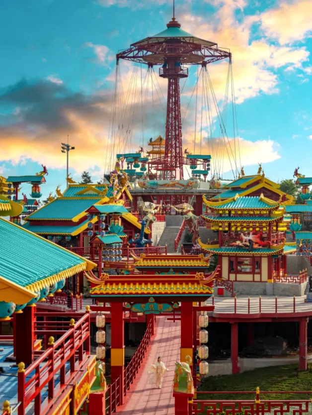 云上仙侠镇傲居云上草原之巅,以武侠文化为主题打造的沉浸式景区,街巷间NPC身着古装与你互动,擂台比武、门派任务、酒肆客栈重现武侠世界。