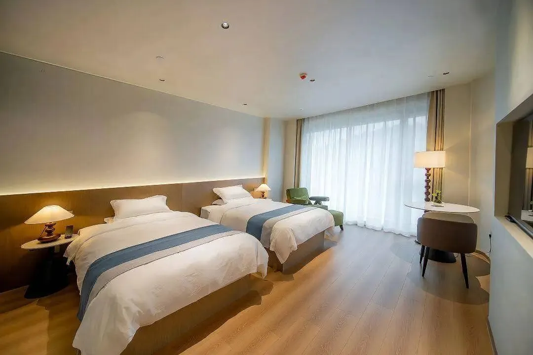 房间清新典雅,设施齐全,配有高品质洗护品,高端品牌床垫,坐在房间也能眺望苍翠青山~