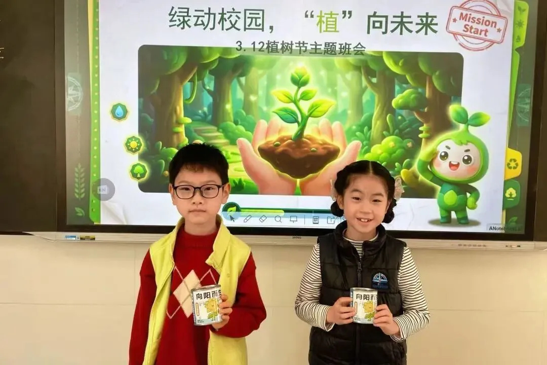 学校举行植树节主题班会,全体同学领取梦想种子,一颗颗小小的种子,承载着对自然的敬畏、对未来的憧憬,正式开启校园植树节的温暖篇章。
