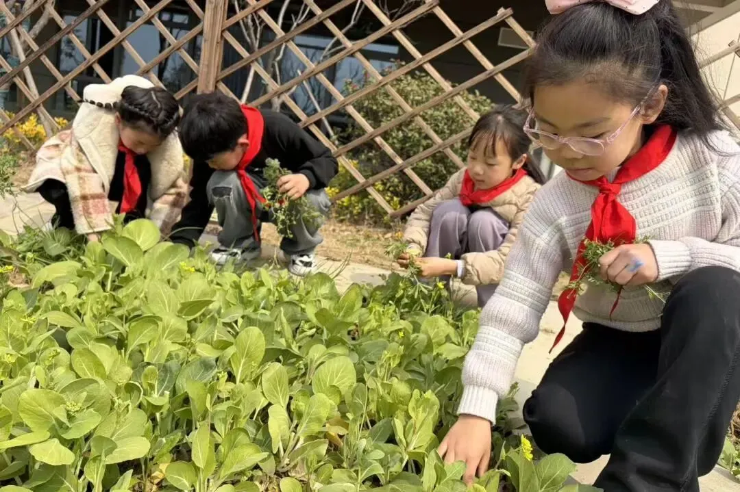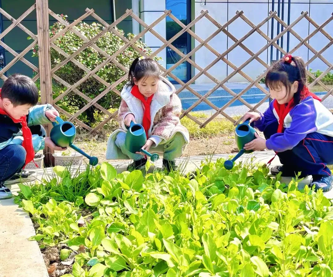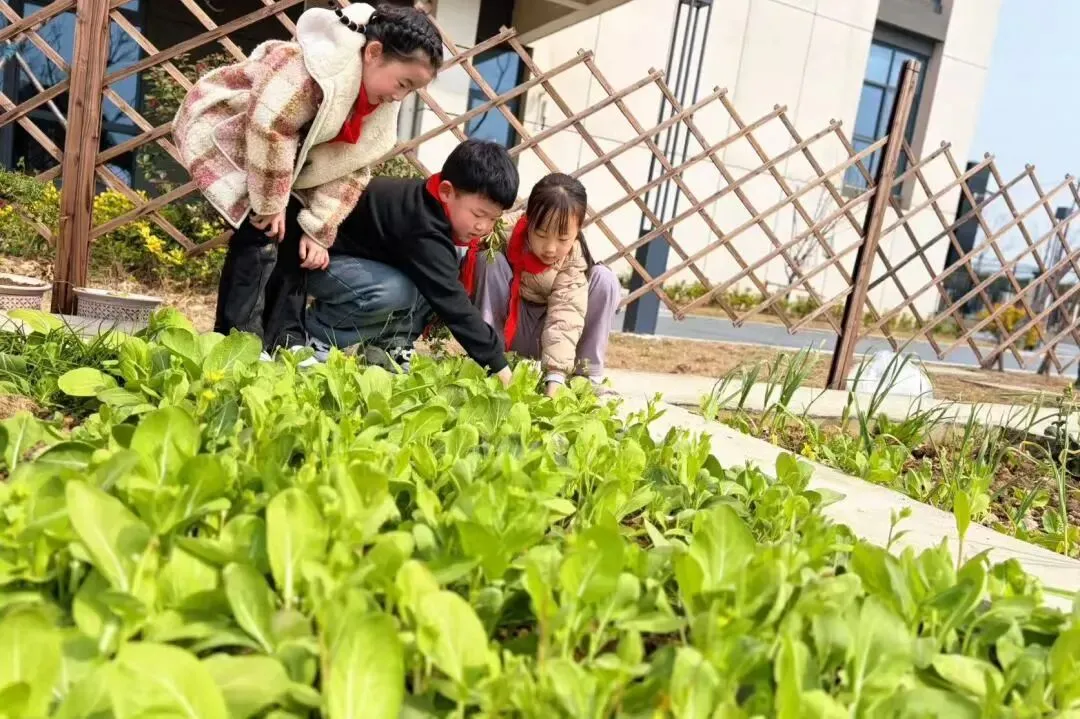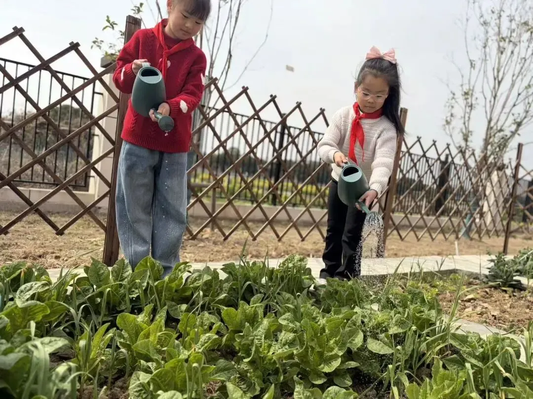 二年级同学化身小园丁,整理“融耕小筑”小菜园,清除杂草、规整土地;同时细心照料教室绿植,浇水擦拭,在劳动中学会责任与担当。