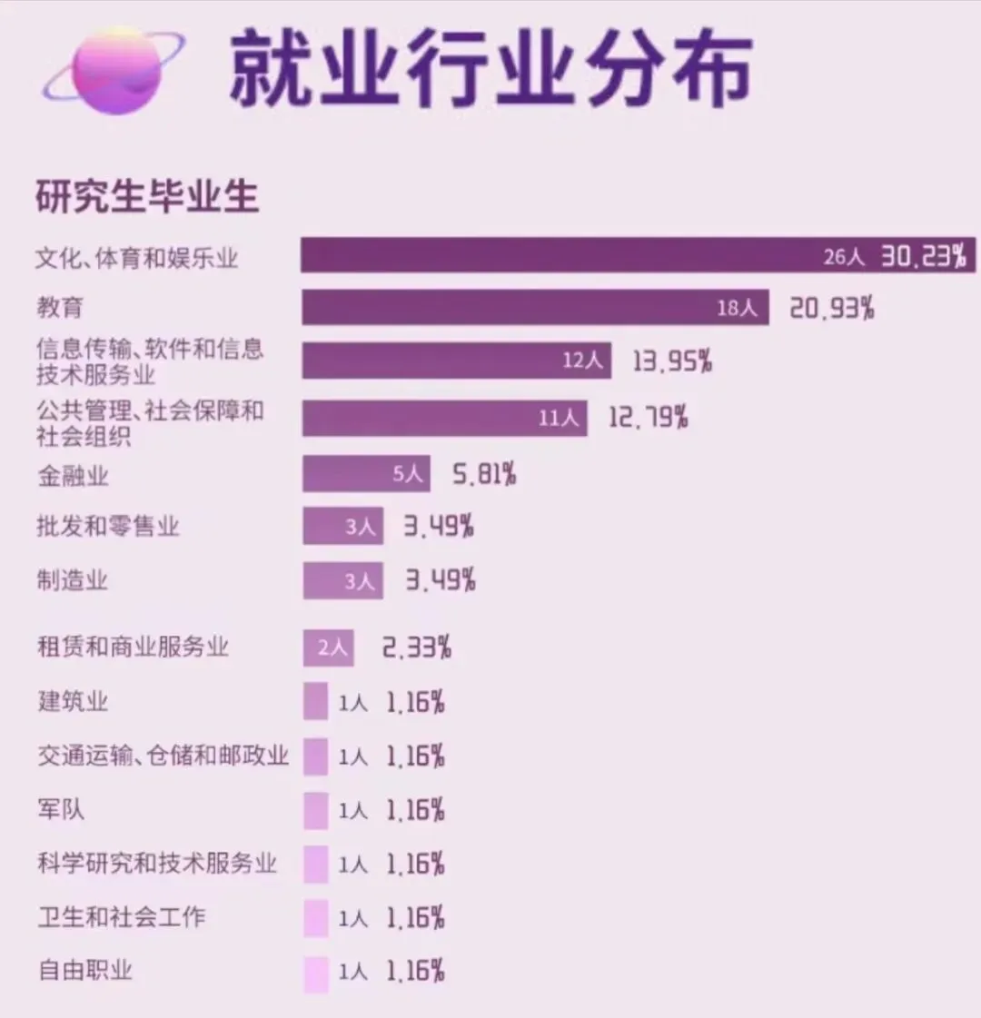 硕士新生:推免生→1万|统考生→8000元或6000元(按初复试成绩定)硕士研究生每生每年6000元。(非全日制没有奖学金)南大硕士的就业前景还是不错的,毕业生工作地点主要分布在江苏、上海、北京几个经济发达城市。下面来看下南大新闻传播院2024届新闻与传播毕业生的就业情况(不完全统计)其中文化、体育和娱乐业(30.23%);教育(20.93%);信息传输、软件和信息技术服务业(13.95%)▍ 单位性质分析