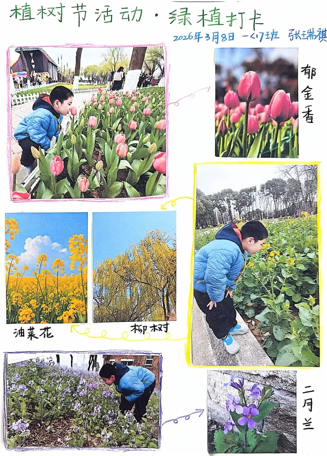 校园里的小树苗们,都收获了专属的“成长伙伴”。孩子们与心仪的树木合影留念,定下共同成长的约定。他们通过文字、图画或照片,认真记录小树抽枝、长叶的变化,也见证着自己在时光里的点滴进步,也成为温暖的成长纪念。
