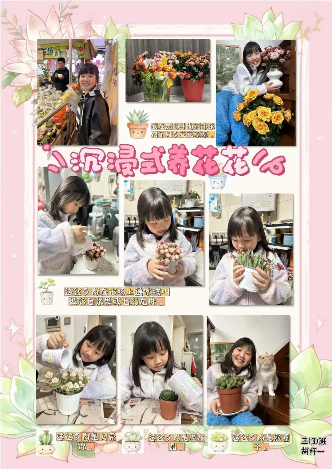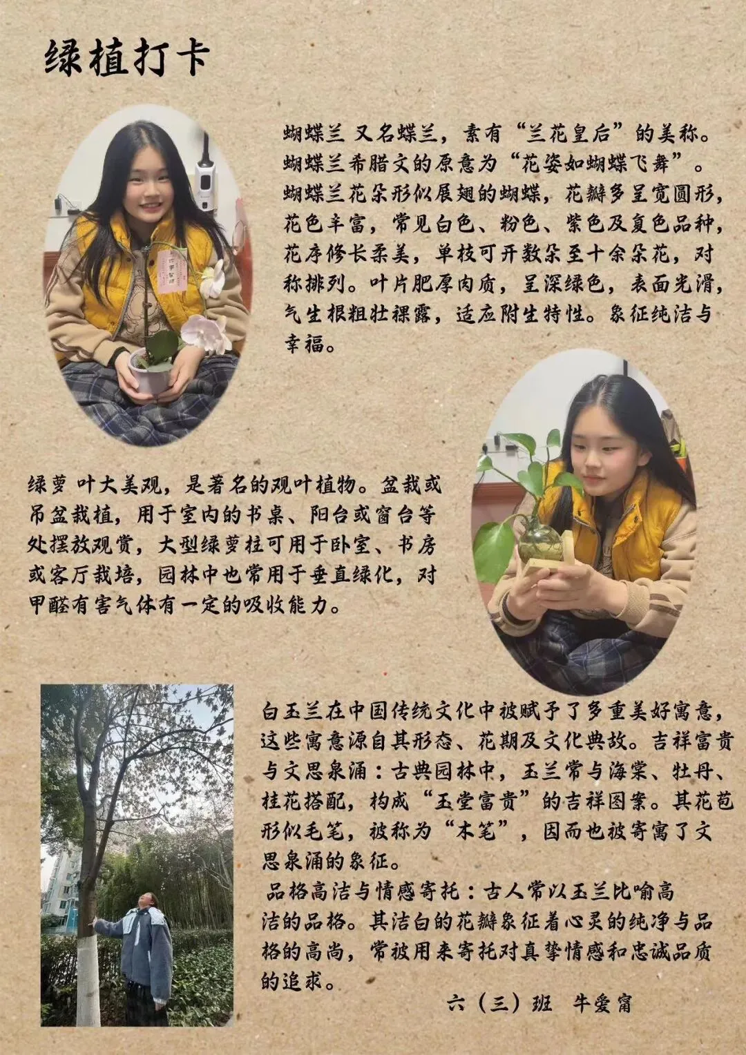 同学们漫步公园、社区与校园,进行绿植探秘之旅。大家纷纷打卡认识各种花草树木,用文字、照片记录下它们的外形特征与花期特点,在细致观察中解锁了自然知识,读懂万物生长的奇妙。
