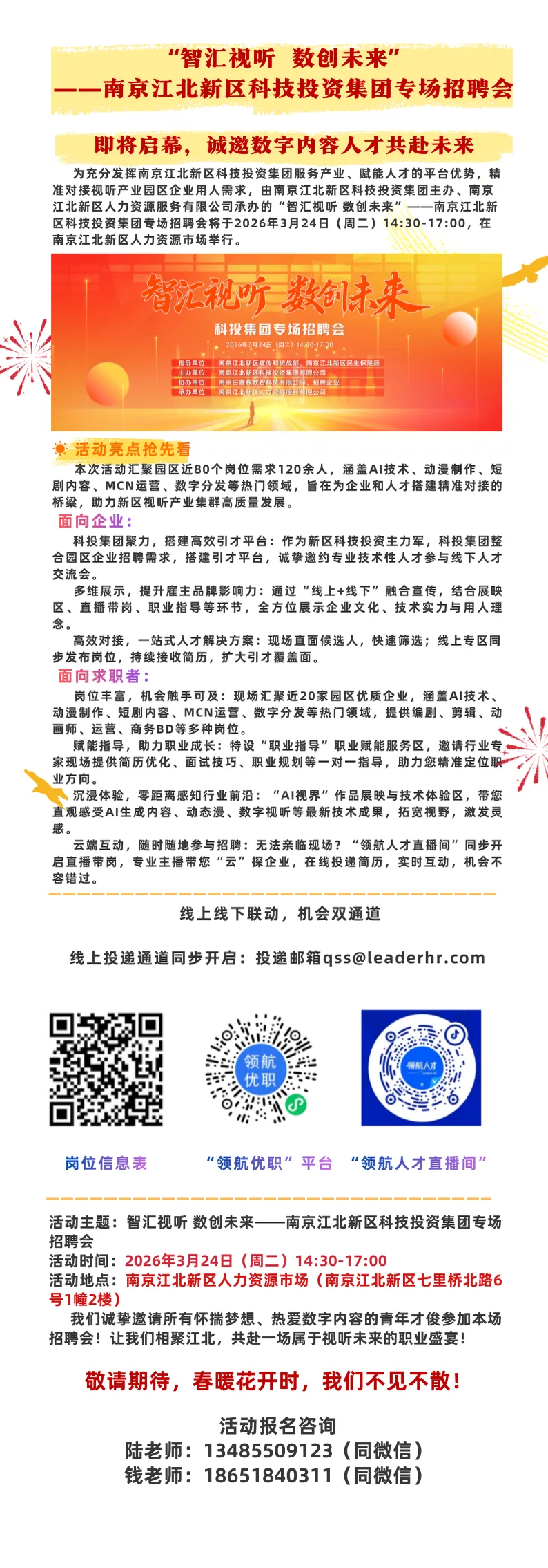 “智汇视听 数创未来”——南京江北新区科技投资集团专场招聘会即将开始