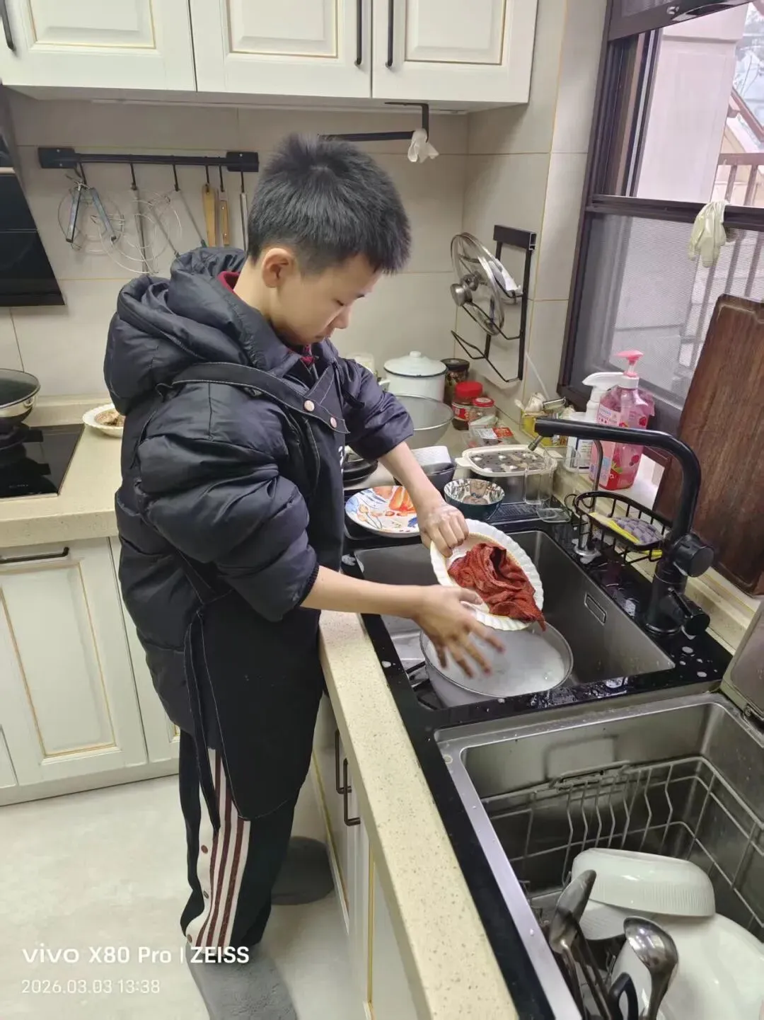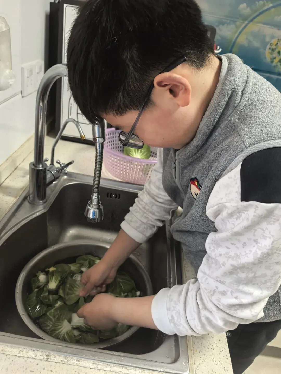 劳动实践练本领,小小少年显担当。 假期里,同学们化身“劳动小当家”,从整理书桌、择菜洗菜等小事做起,尝试清洗衣物、收拾餐具、制作早餐、家庭大扫除等家务,一双双小手变得愈发灵巧,一颗颗懂得感恩、乐于奉献的种子悄然发芽,劳动的快乐与成就感溢满心间。