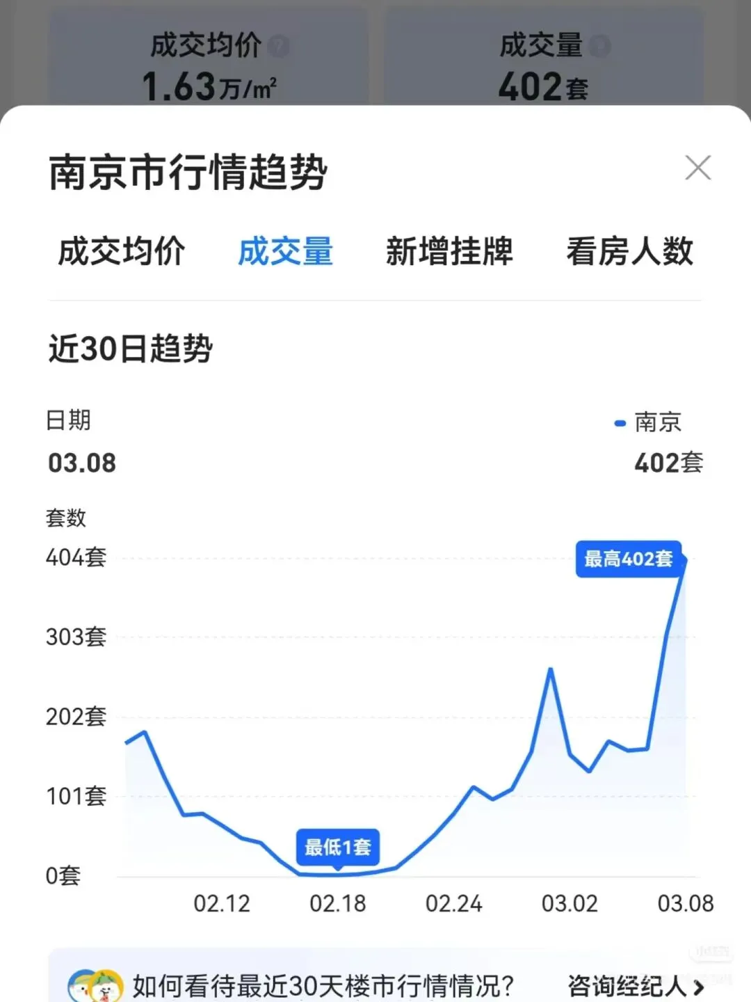 据某房产网站数据显示,3月份开始,南京二手房市场看房人数和成交数量都大幅度上涨。有中介表示,部分学区房一周内涨了15-20万。