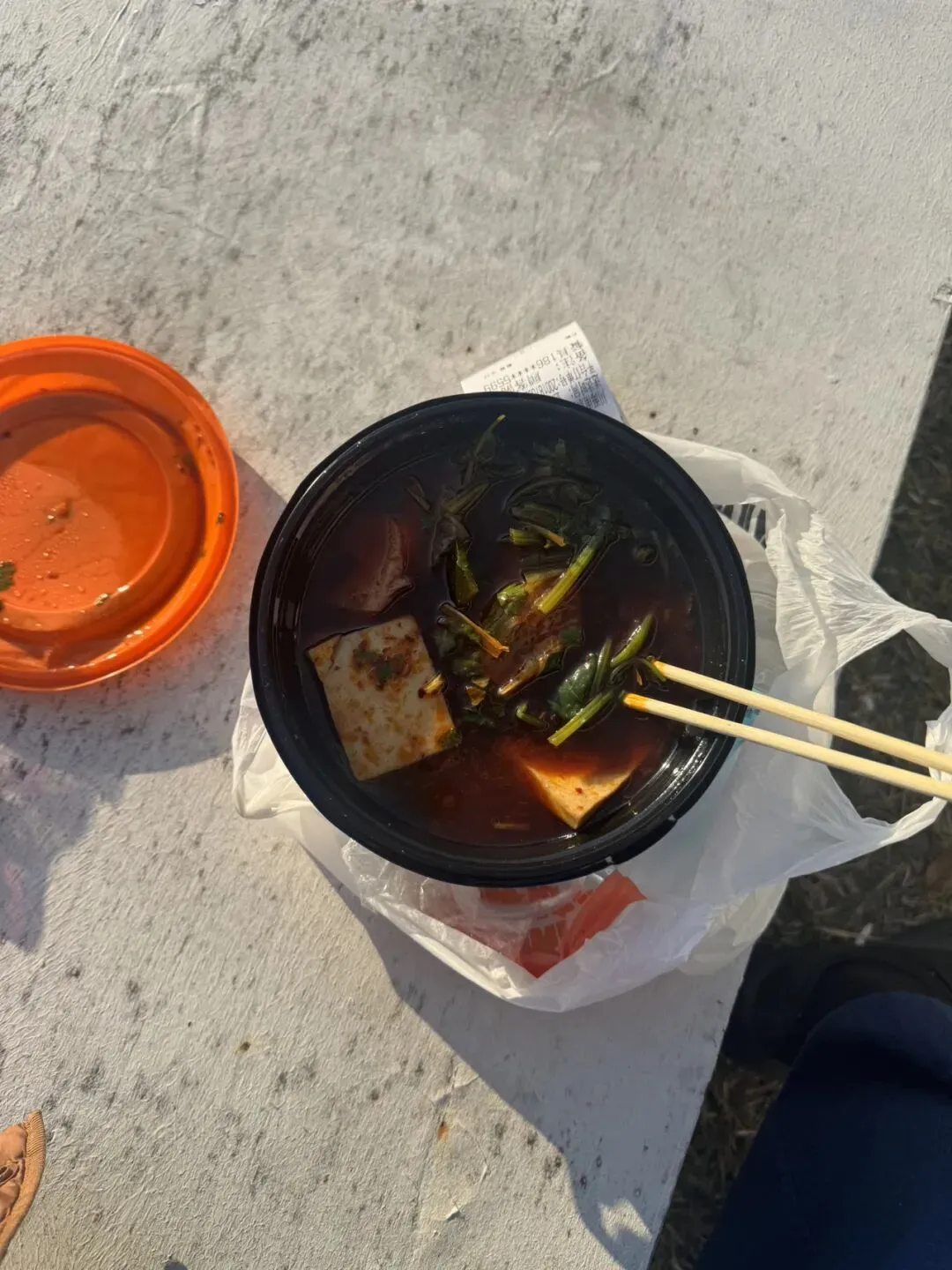 我上次来这里是参加杜嘉宁的BOP标王分享会,结束后我点了一碗麻辣烫,只要25块,坐在外面的地上吃,收获了一些朴素的幸福。