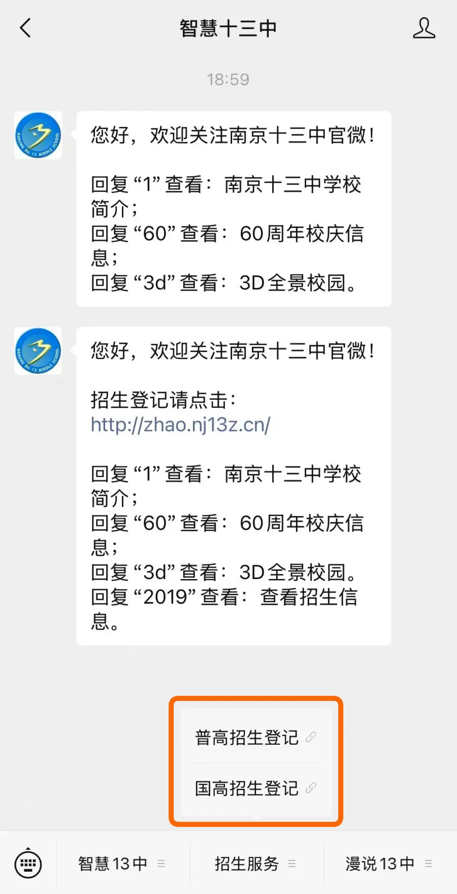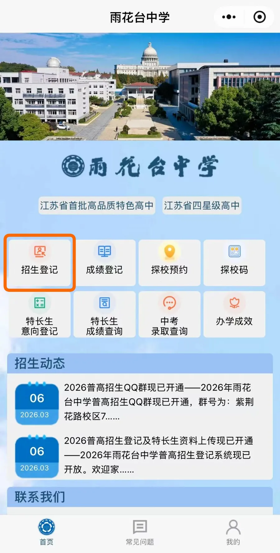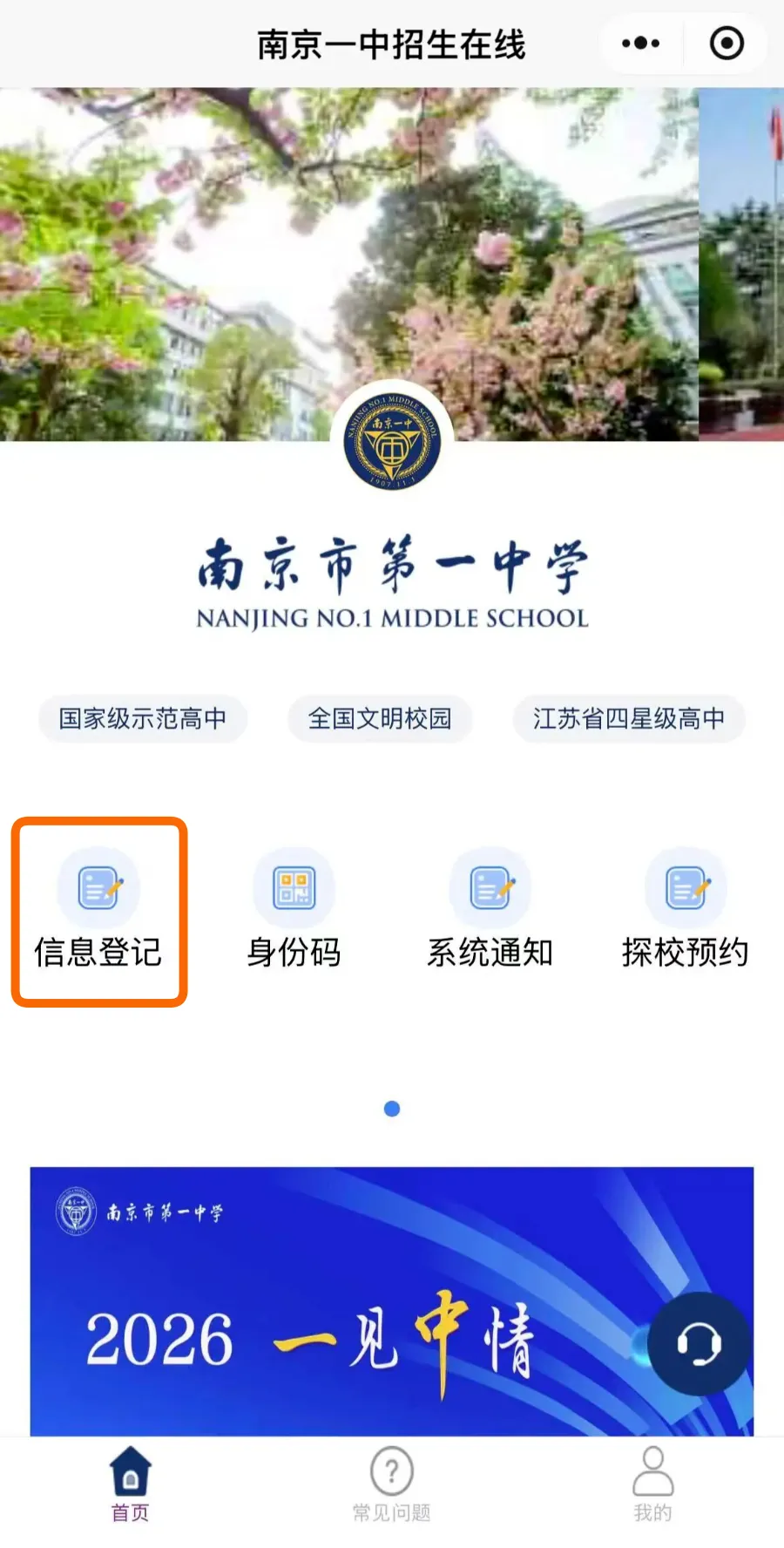 1. 微信打开「南京一中」公众号