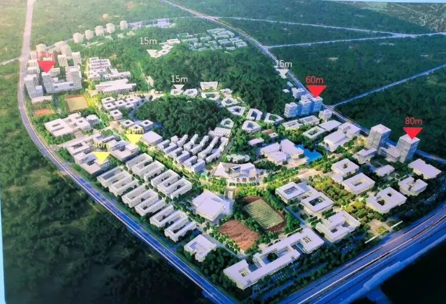 从规划上来看,用地性质为A31高等院校用地,校园二期用地规模约23.81公顷,校园整体用地规模约121.67公顷,建筑高度≤60米,容积率≤1.5,拟建总建筑面积约43.73万平方米,其中地上建筑面积约38.75万平方米,地下建筑面积约4.98万平方米。