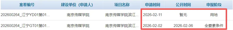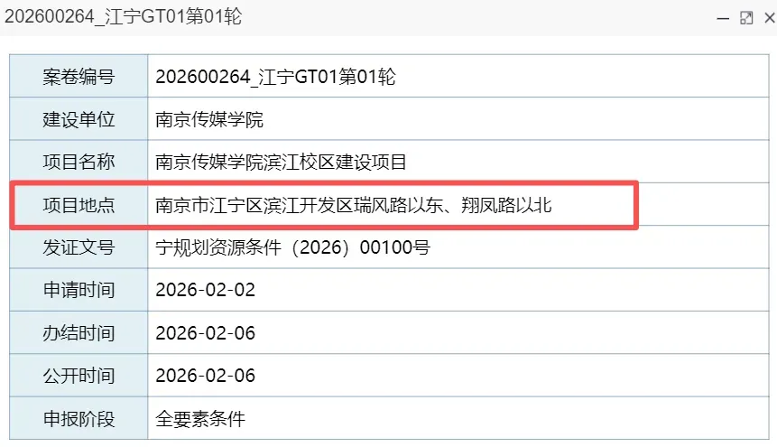 我在南京政府官网发现,就在春节前,南京传媒学院滨江校区建设项目已经完成全要素申报,正在进行用地申报!