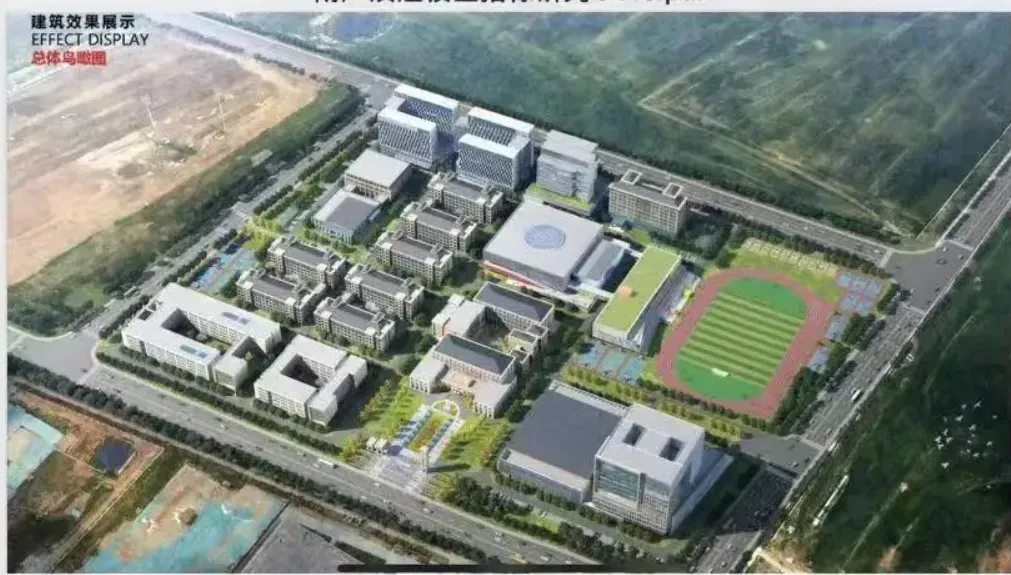 南区用地面积222191.43平方米,总建筑面积约41740.4平方米,其中:地上建筑面积约32679.4平方米;地下建筑面积约9061平方米,主要建设内容为行政办公楼、教学楼、看台。该项目容积率0.15,建筑高度35.45米,建筑密度6.2%,绿地率50%。项目指标符合相关法律法规及规划条件要求。
