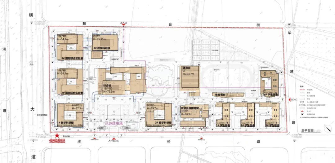 建成后,校园总面积约90.3万㎡,其中地上约80.5万㎡,地下约9.8万㎡。主要建设功能为教学用房、科研用房、学生宿舍及配套服务等。
