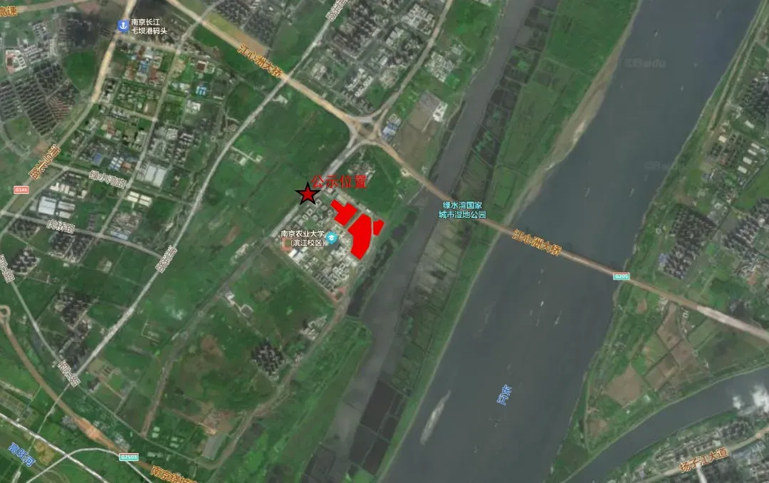 南京农业大学滨江校区二期位于江北新区滨江大道666号,南京农业大学滨江校区东侧。滨江校区东北靠横江大道,东侧为博达路,西侧为绿水湾路。