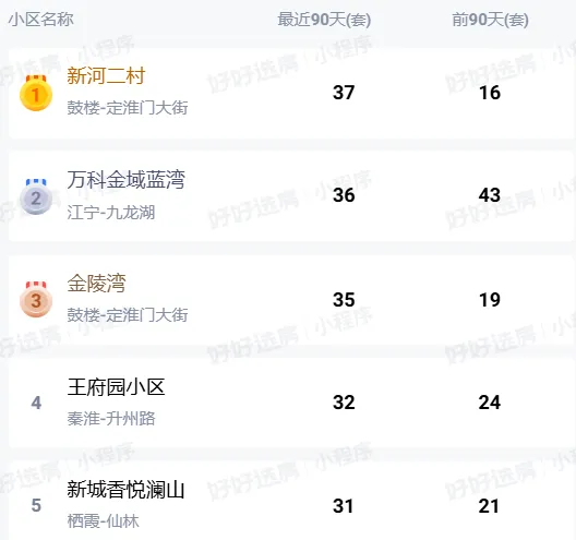 数据显示,1月南京热点学区房成交量突破600套,创下近5年新高。树人板块成交超130套,钟英片区成交130套以上,双双翻倍增长。新河二村近90天卖出37套,拿下二手房成交量榜首;恒盛金陵湾单月成交17套,创下近半年新高。