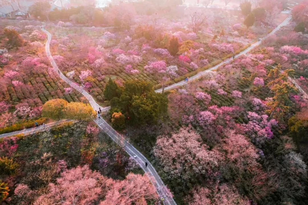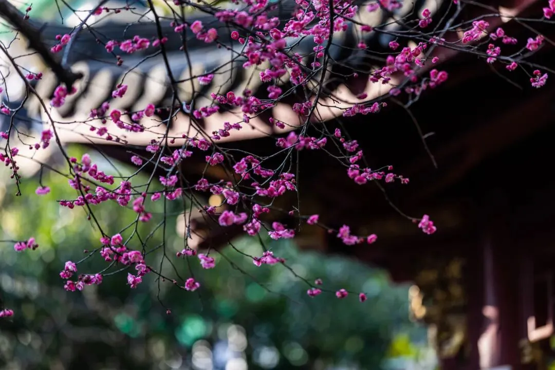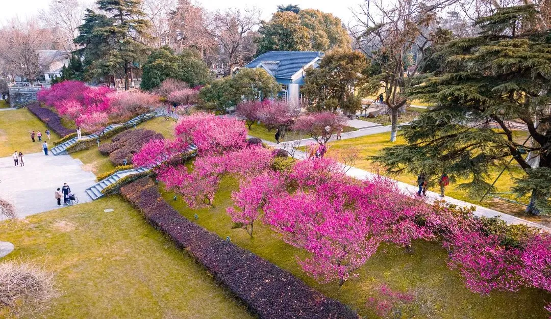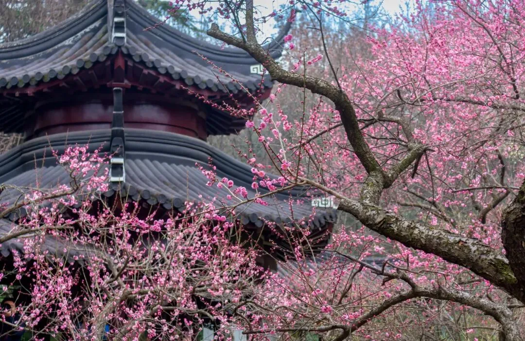 是南京最早种植梅花的地方之一,植梅历史可追溯至东晋。梅岗以江南园林风格为主,访梅亭、问梅阁、寒香轩等古建筑与梅花相映成趣,白墙黛瓦、洞门花窗间,梅花绽放如诗如画,充满中式美学韵味。